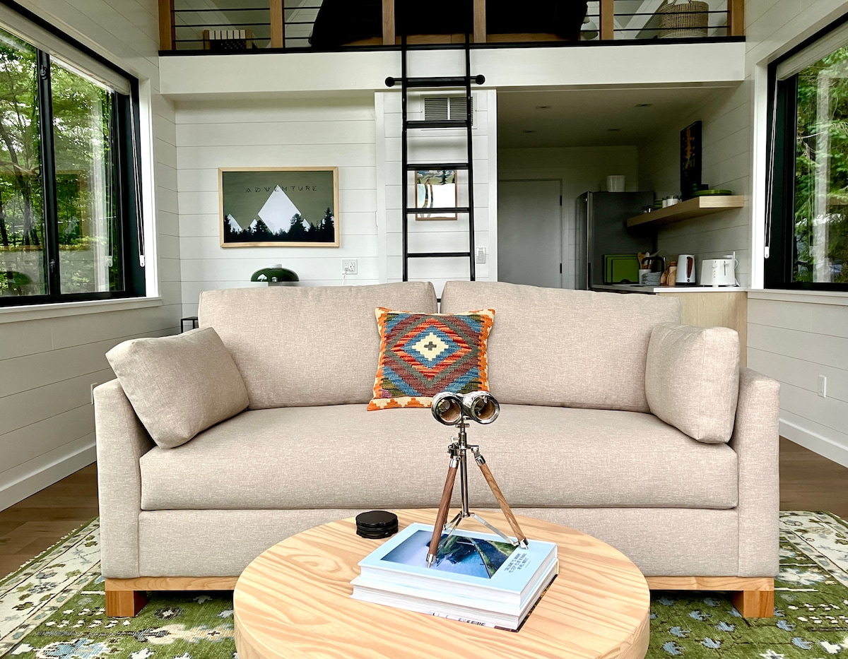 Spacious sunny rustic-chic modern retreat nestled in the mountains of the Lakes Region. From the handcrafted soap, to the cozy robes and King size bed, stocked coffee/tea station, you are pampered. The curated space features local artisans and was designed with your comfort in mind. The area has much to offer (see Neighborhood section for distance to attractions and Guidebook under Location). All-size dog friendly (see dog policy for details). We live on site and Welcome Diversity.