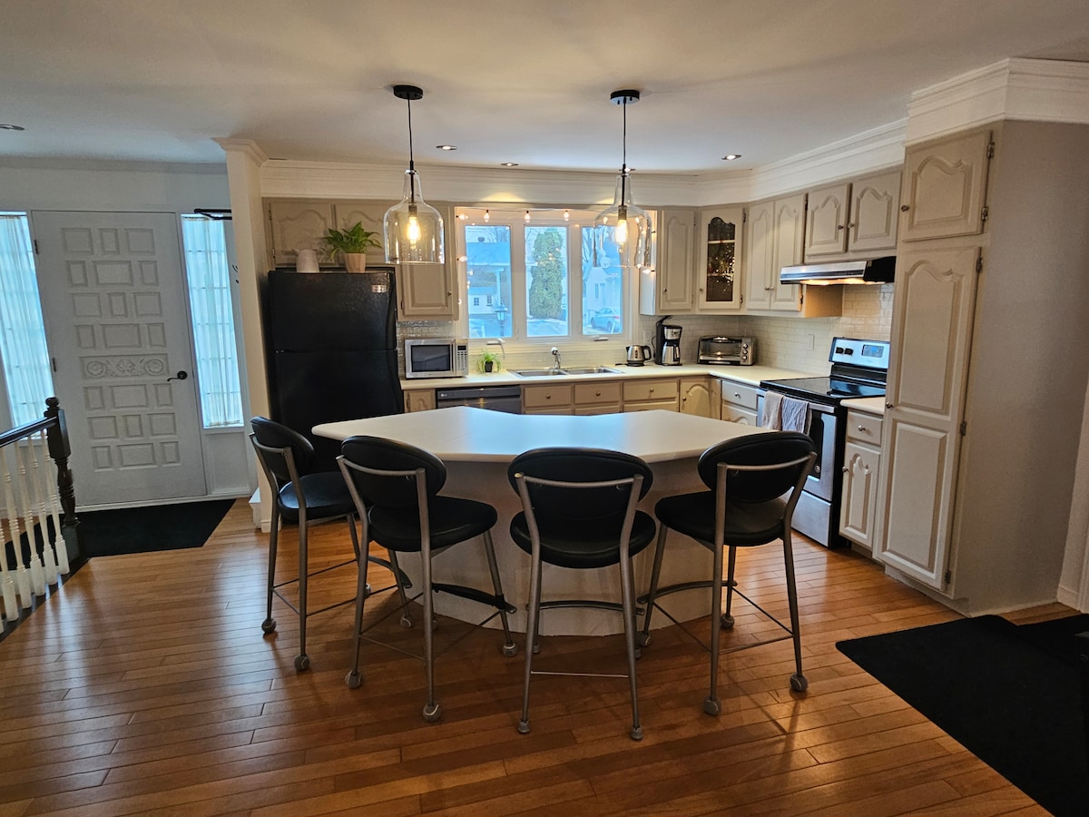 Bienvenue dans notre charmant appartement au rez-de-chaussée dans la belle ville d'Orillia ! Cet espace est adapté aux familles ou aux petits groupes à la recherche d'un séjour confortable dans un emplacement pratique. Il s'agit d'une maison entièrement meublée qui dispose de trois chambres, d'une salle de bain, d'une cuisine entièrement équipée avec tous les éléments essentiels nécessaires pour préparer vos propres repas. Le salon est lumineux et confortable avec une télévision intelligente Samsung de 43 po avec Netflix, une connexion Internet haut débit illimitée et une table à manger spacieuse de 6 places.