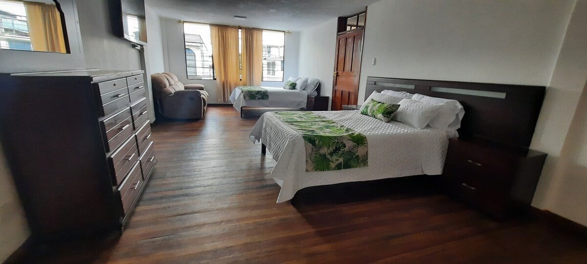 Notre Suite est parfaitement située dans un endroit central à proximité de différents endroits indispensables tels que le terminal terrestre, les supermarchés, etc. Le fait qu'elle soit centrale n'enlève rien à la tranquillité et au calme de l'endroit, vous pouvez également profiter du jacuzzi qui se trouve dans la suite et de sa belle vue dans laquelle, par temps clair, nous pouvons observer les sommets enneigés de l'Altar et du Sangay.