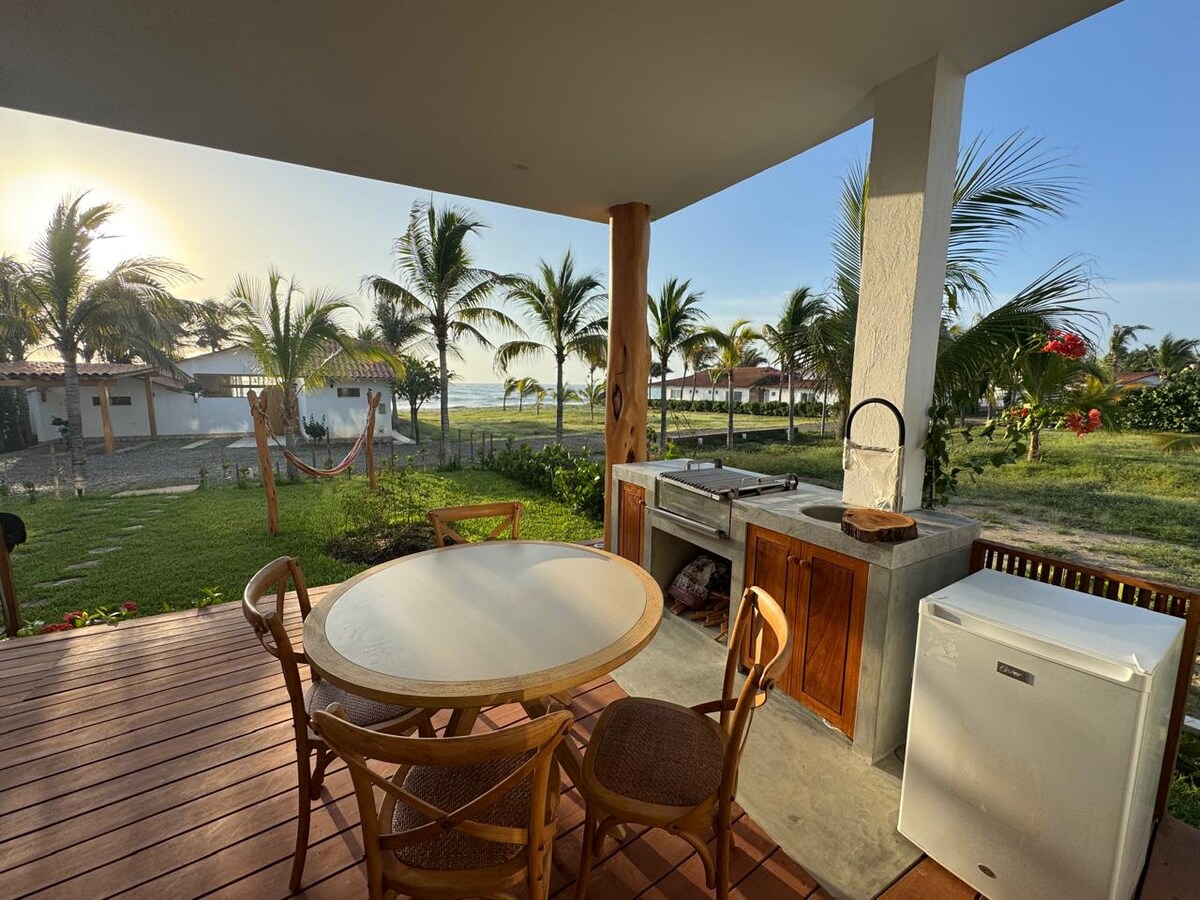 Nous sommes dans une copropriété privée avec seulement 15 maisons en face de la plage. Nous sortons directement sur le sable où il y a une ramada avec des fauteuils et un coin feu. Les chambres sont totalement indépendantes. La principale est au deuxième étage et les 3 autres dans des bungalows autour des espaces communs et de la piscine. Il y a deux terrasses et une salle intérieure qui offre beaucoup d'espace social. Toutes les chambres et terrasses ont vue sur la mer. Mer chaude, longue plage, beaux couchers de soleil et délicieuse nourriture
