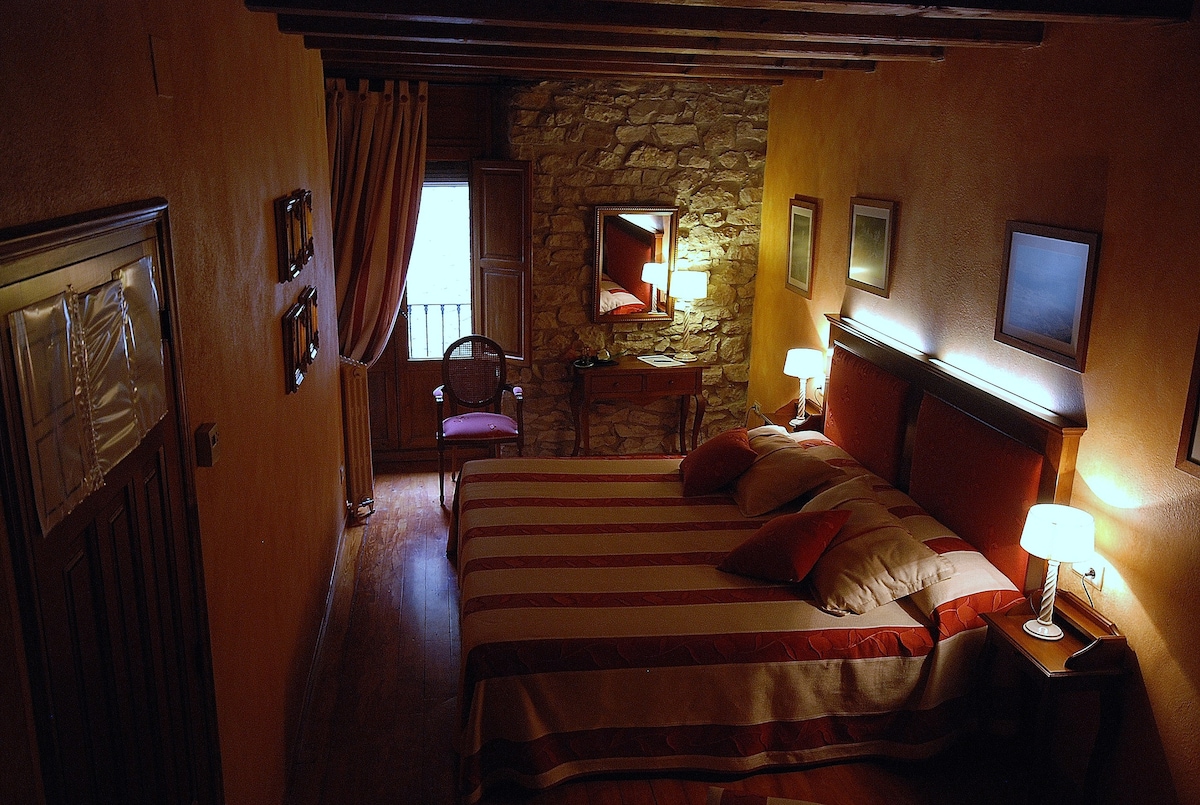Magnifique maison de village ancienne village entièrement restaurée. Elle se compose de 4 étages et d'une belle terrasse avec une vue imprenable. Située dans un charmant village médiéval extrêmement calme. Patio extérieur avec barbecue. Des centaines de kilomètres à parcourir en vélo de route ou de montagne. Région riche en histoire et en gastronomie. En été, vous pourrez profiter de la piscine municipale, qui se trouve à seulement 3 minutes de la maison, ou aller vous baigner dans la rivière. L'endroit idéal pour se reposer loin de la ville.