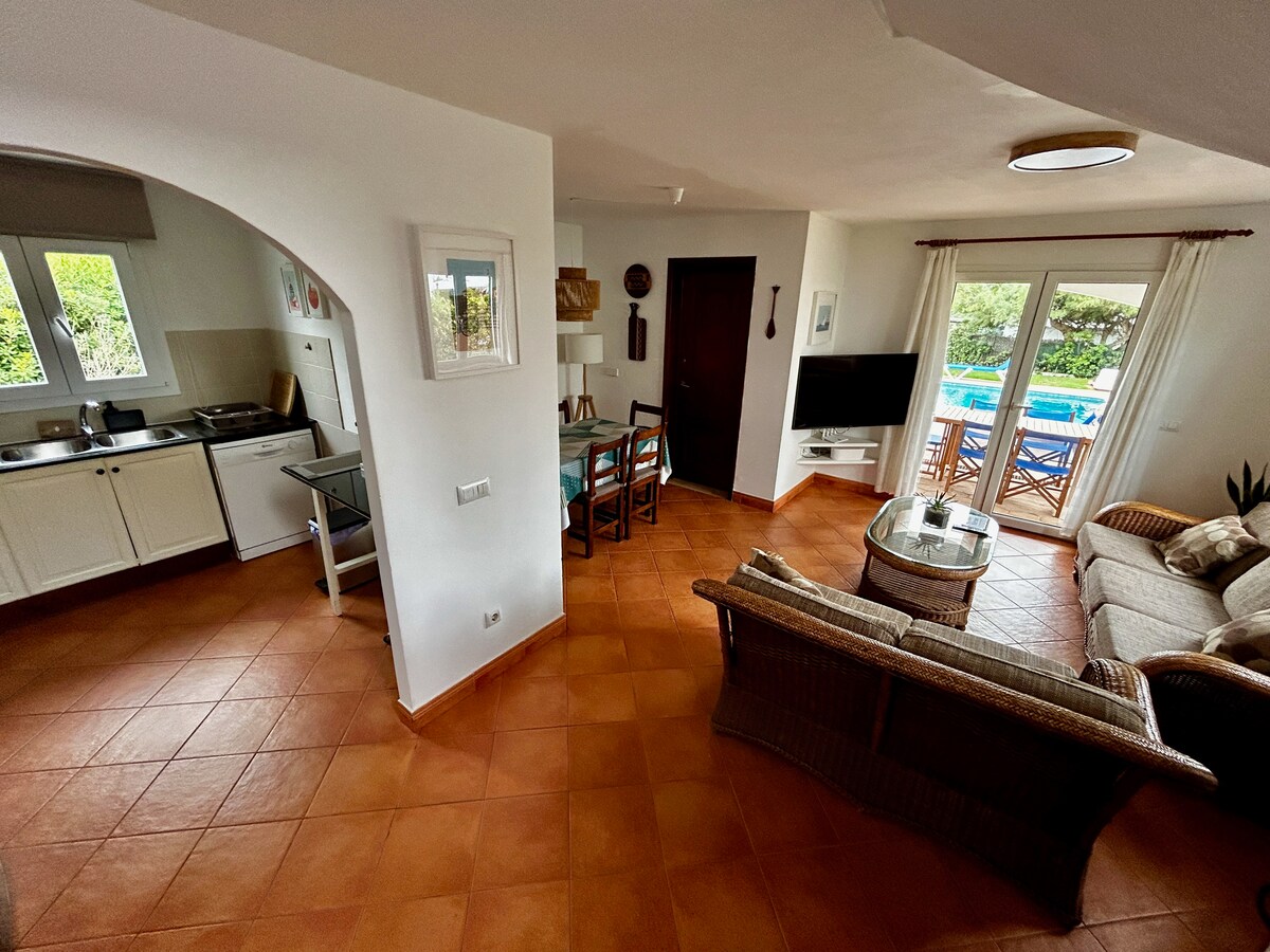Ma maison dispose de 3 chambres doubles (une suite), piscine privée, jardin, barbecue et vue à 180º sur la mer et le coucher du soleil. Il est situé dans l’urbanisation tranquille de Cap D’Artutx, à 5 min. en voiture (ou 25 à pied) des belles plages de Cala'n Bosch et Son Xoriguer, et à 15 min de Ciutadella. Toutes les chambres sont climatisées. et la maison a une Smart TV 40 '', wi-fi et lave-vaisselle.