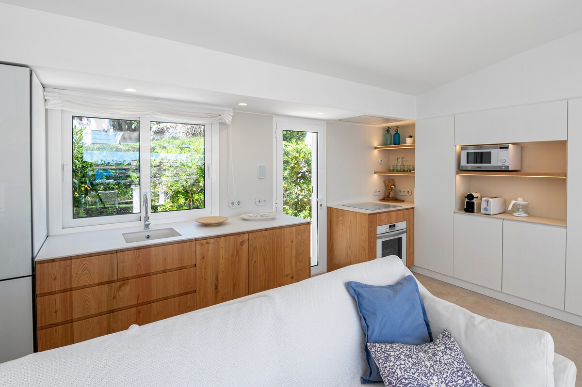 Vivez comme un poisson dans l'eau dans notre bel appartement avec vue sur la mer et à quelques mètres d'une magnifique piscine. Sentez la brise marine de la Méditerranée en regardant les meilleurs couchers de soleil depuis notre terrasse dans l'une des zones les plus attrayantes de l'île de Minorque, à quelques pas du phare d'Artrutx. Sans aucun doute, dans notre propriété entièrement rénovée, avec des environnements spacieux, la climatisation, un barbecue et un mobilier moderne, vous passerez des vacances inoubliables. Plongez dans la détente profonde !