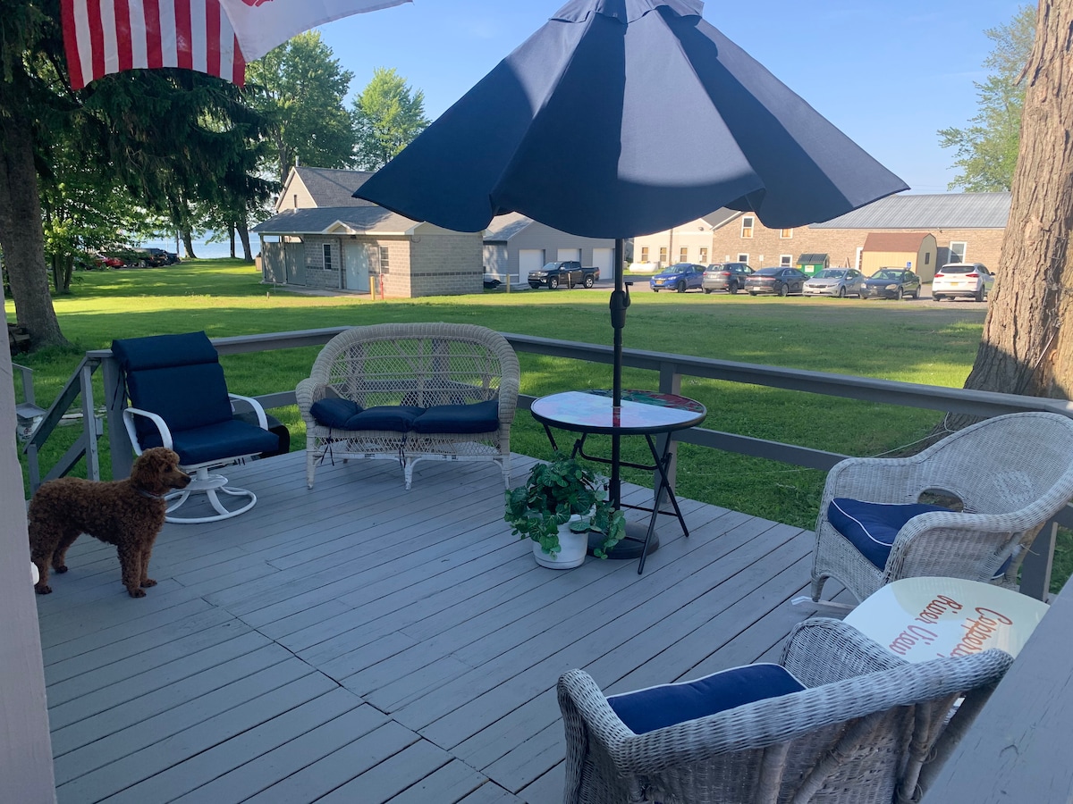 Welcome to our Lakefront Sunset Cottage! Close to Cape Vincent, Clayton, Sackets Harbor, and more! The perfect family friendly place to bring the boat, enjoy the picturesque views, the lakefront property, and the relaxing area! The sunsets and sunrises are spectacular! Enjoy the views from the deck. There is also a conveniently located public boat launch and public beach area at the top of the road.