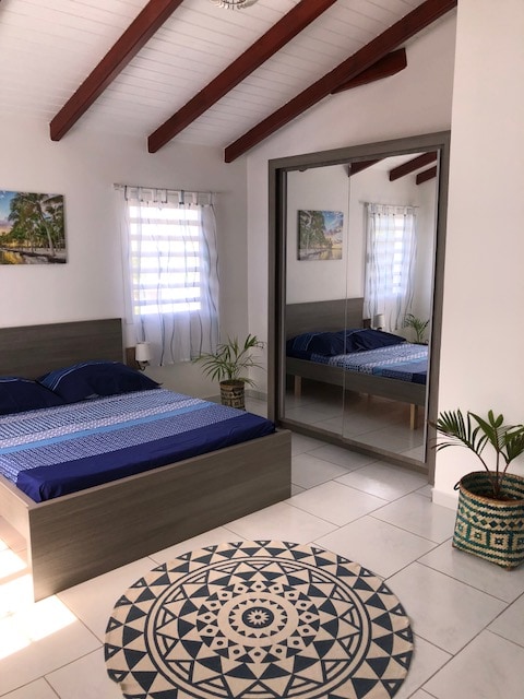 Venez passer vos vacances dans ce beau logement logé dans un écrin de verdure, au calme et au plus proche de la nature. Petit déjeuner fait maison compris avec la location. Vous aurez tout le confort à votre disposition ainsi que l'accès privé à la piscine et au carbet. Idéalement situé sur l'ile, vous pourrez vous déplacer facilement (5 min de la cascade aux écrevisses et randonnées, 30 min de la réserve Cousteau, 20 min des plages du Gosier). L'accueil y sera toujours chaleureux et discret.