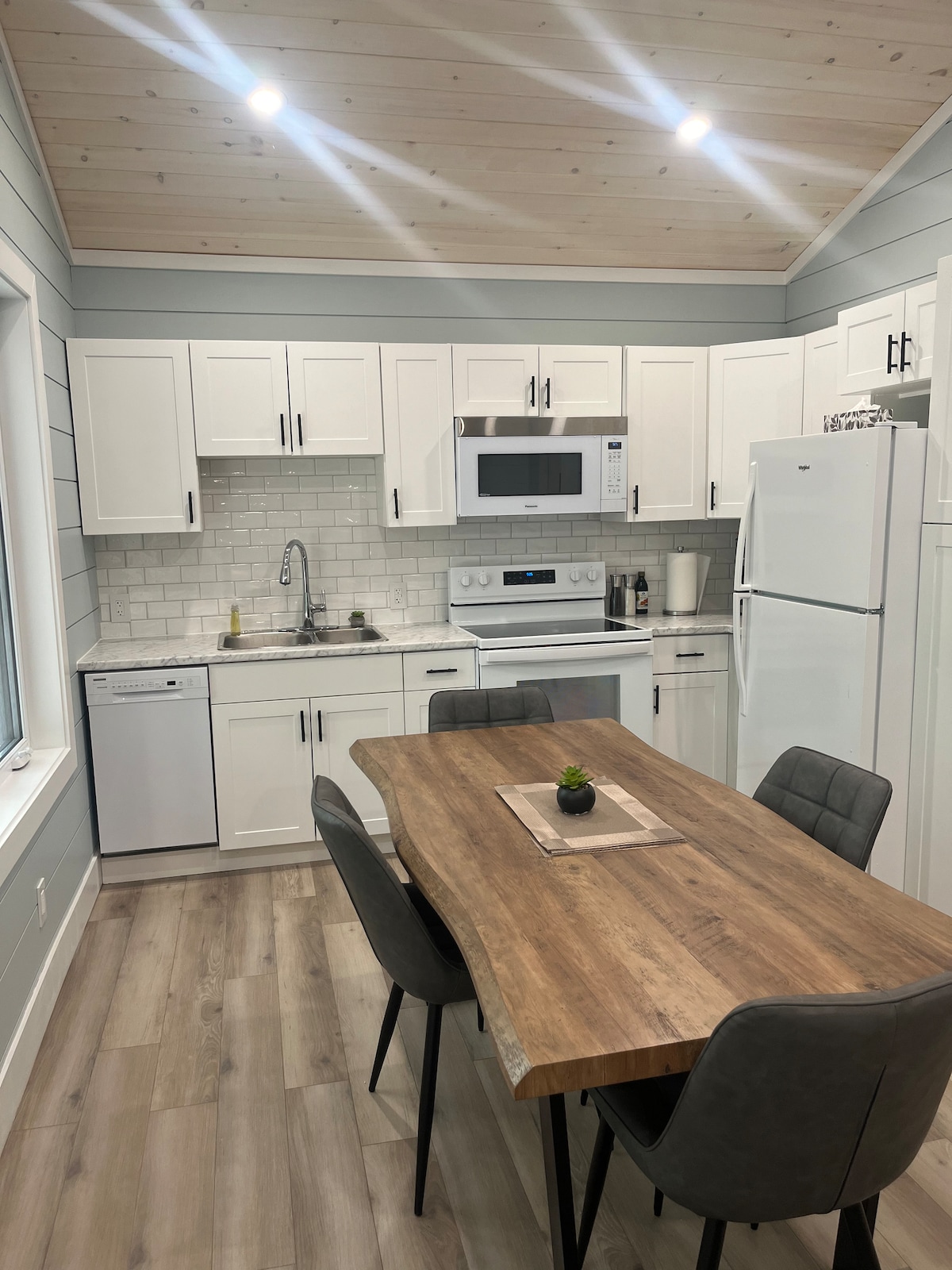 Venez relaxer dans notre Chalet bleu douillet, à quelques pas de la plage. Récemment construit (2024), il allie confort moderne et charme rustique avec son intérieur en pin chaleureux, un chic foyer électrique et des planchers chauffants en béton. Profitez de la vue sur la mer, de l’espace de vie ouvert, d’une cuisine entièrement équipée, du réseau Wi-Fi et de la télévision pour des soirées tranquilles. Conçu avec soin pour la détente, c'est l'endroit idéal pour se ressourcer au bord de la mer.