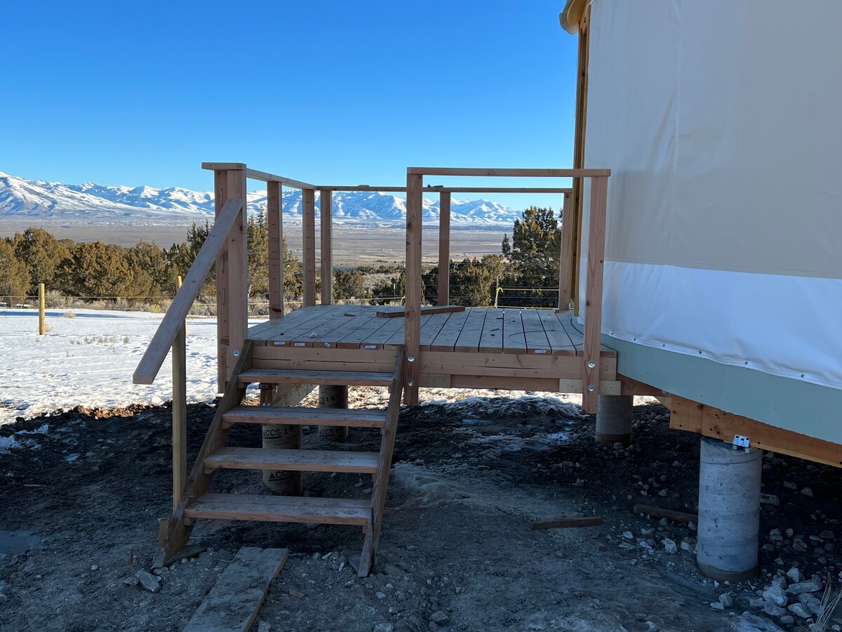 Superbe vue sur la montagne et le lac depuis notre yourte de 30’de diamètre ! Accès à la randonnée, au vélo, à la pêche, etc. Expérience de vie hors réseau authentique qui comprend 600 W d'énergie solaire qui facture un Yeti Goal Zero et alimente le réfrigérateur, Starlink, et plus encore. Dispose de toutes les commodités : cuisine équipée, chauffage, porta-potty sur place, douche dans la yourte, lit queen dans le loft, 1 futon queen, espace pour le yoga ou simplement pour se détendre. Idéal pour tous ceux qui cherchent à s'évader, au travail