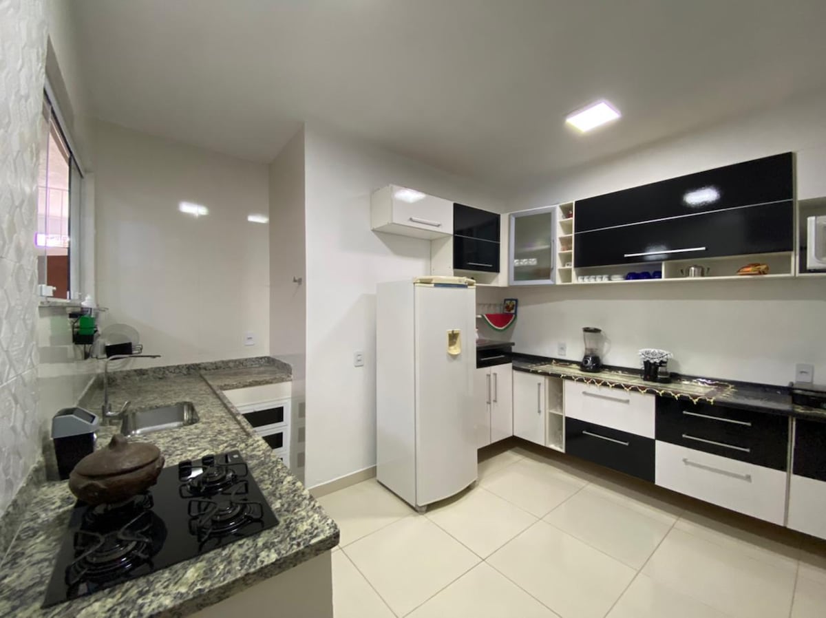 La maison est à l'intérieur des terres dans la région montagneuse La ville est belle, boisée et calme. La maison offre une vue magnifique. places pour coucher : - Suite avec un lit double - chambre avec deux lits simples - Sala avec canapé convertible Espace avec barbecue , table et lave-linge. Belle vue sur le lever du soleil. Naissance de lune en plein cœur de la « mer de collines du sud-est » obs. : Carmo est une ville très sûre, avec seulement 20 000 habitants. obs. : Une des salles de bain est encore incomplète (sans lavabo et boîte)