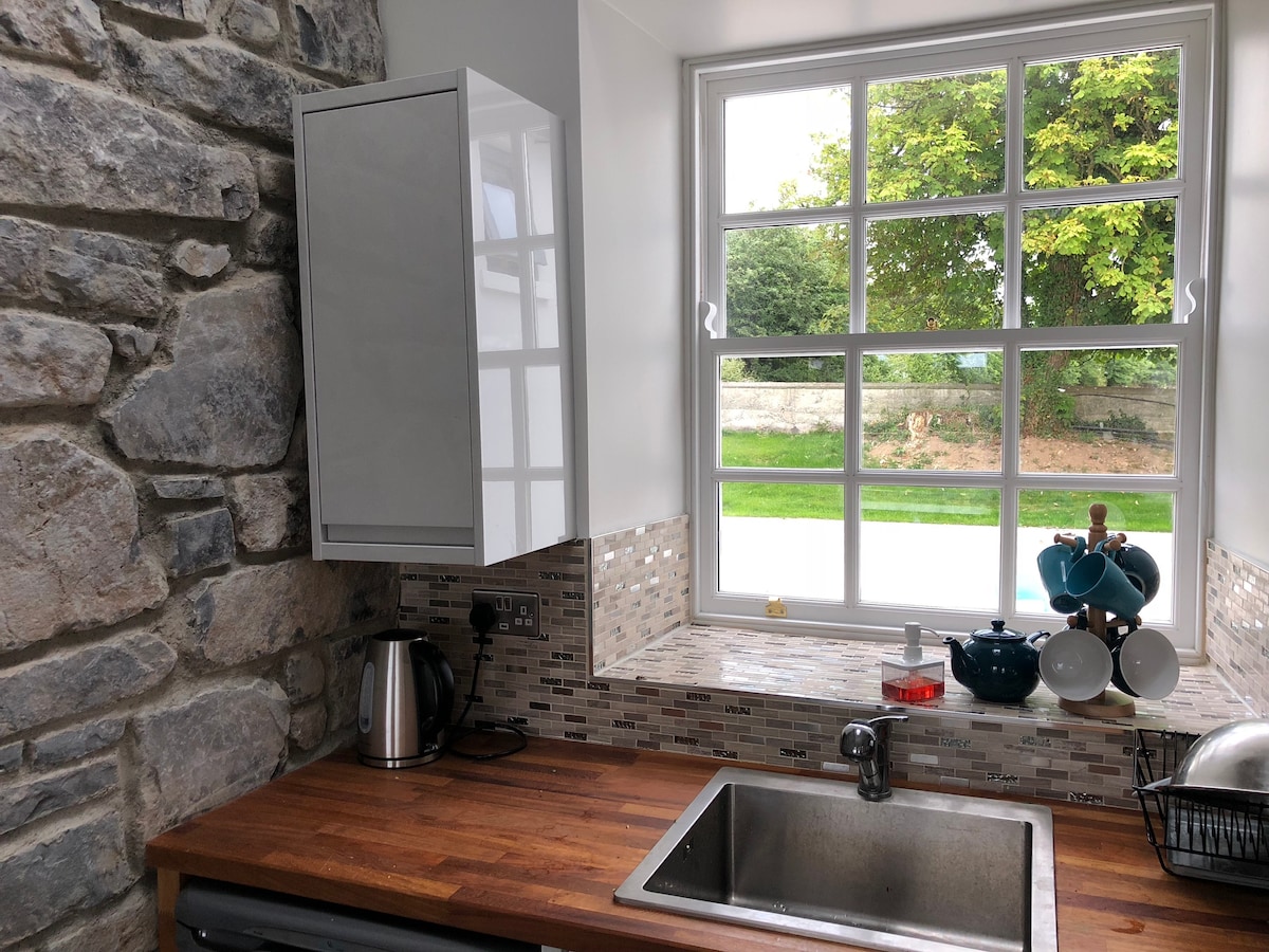 Bienvenue dans notre luxueux chalet niché dans l'ouest de l'Irlande où vous pourrez vous détendre dans un luxe total, profiter de promenades paisibles à la campagne et pourtant en 20 minutes, vous pouvez être au cœur de la ville de Galway où il y a de nombreux restaurants, des bars animés et des artistes de rue magiques. Le temps de trajet depuis les aéroports internationaux de Shannon et Knock est d'environ 1 heure. La fantastique côte atlantique est à notre porte, avec les falaises de Moher, les îles d'Aran et le Connemara à quelques minutes en voiture.
