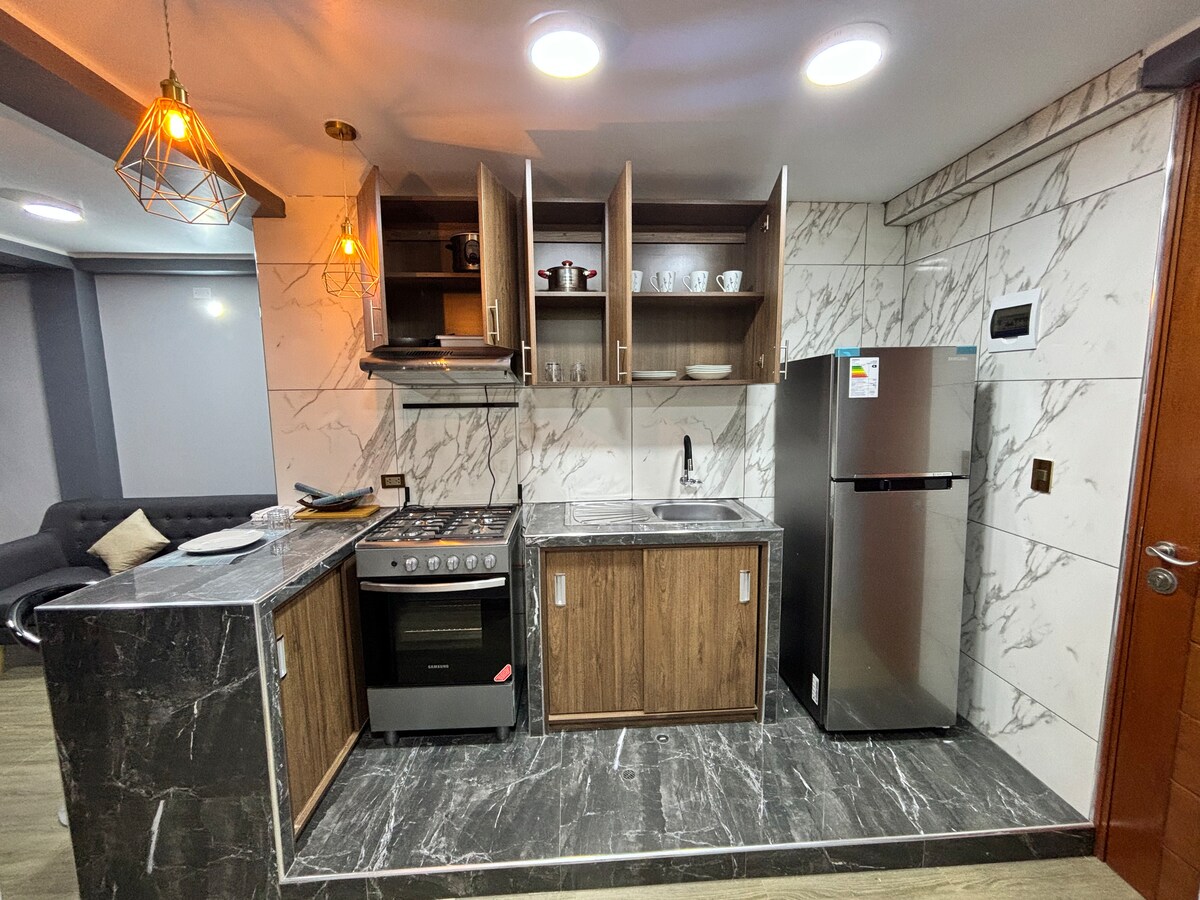 Bienvenue dans notre logement cosy et confortable à Ica, idéal pour les familles, les amis et les voyageurs avec ou sans animaux de compagnie. Situé dans une copropriété privée et sécurisée 24 heures sur 24, cet espace a été conçu pour que vous vous sentiez comme chez vous dès le premier instant. À seulement 8 min des marchés et des restaurants, à 12 min du centre d'Ica et, approximativement, à 20 min de la Huacachina, ce logement vous offrira ce dont vous avez besoin pour profiter d'un voyage incroyable.