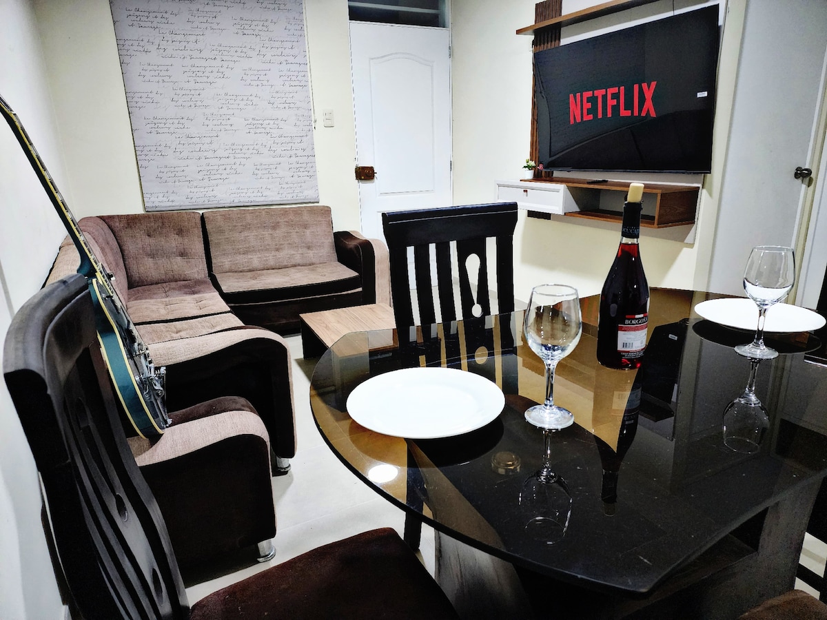 Relájate en familia o en pareja 💐 con Aire acondicionado en Sala❄️,Cafetera express para un Buen café☕️, cocina equipada,Camas muy cómodas, terraza para relajarte y todo lo que necesites para sentirte como en Casa. La casa de Ethan🏡 Dentro de un Condominio con mucha seguridad🚨, Áreas verdes🌱, Cámaras de seguridad📸para La Paz 🕊️de los que desean alojarse, cuenta con cocina,lavadora,caja china,cilindro,HBO, puede dejar su movilidad con tranquilidad y es Pet friendly, a solo 7m del centro