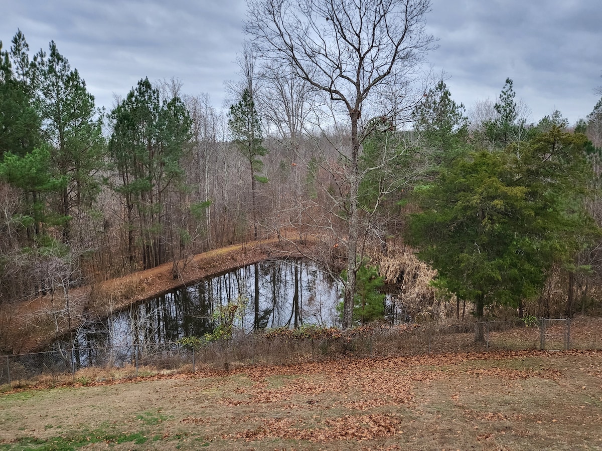 Cette maison d'hôtes est située sur 20 acres de terrain bordé par Hyco Creek à l'est et Caswell Game Land au sud. Idéal pour l'intimité et est une escapade proche pour les amoureux de la nature, les pêcheurs, les chasseurs, ou tout simplement un endroit calme pour échapper à la ville ! Un accès direct à Hyco Creek et au terrain de chasse est disponible par la propriété ; vous pourriez même faire du kayak sur le lac Hyco si vous le voulez ! La propriété dispose d'un portail sécurisé pour l'entrée et la sortie et la propriété est située à environ 1/4 de mile en bas d'une route d'accès.