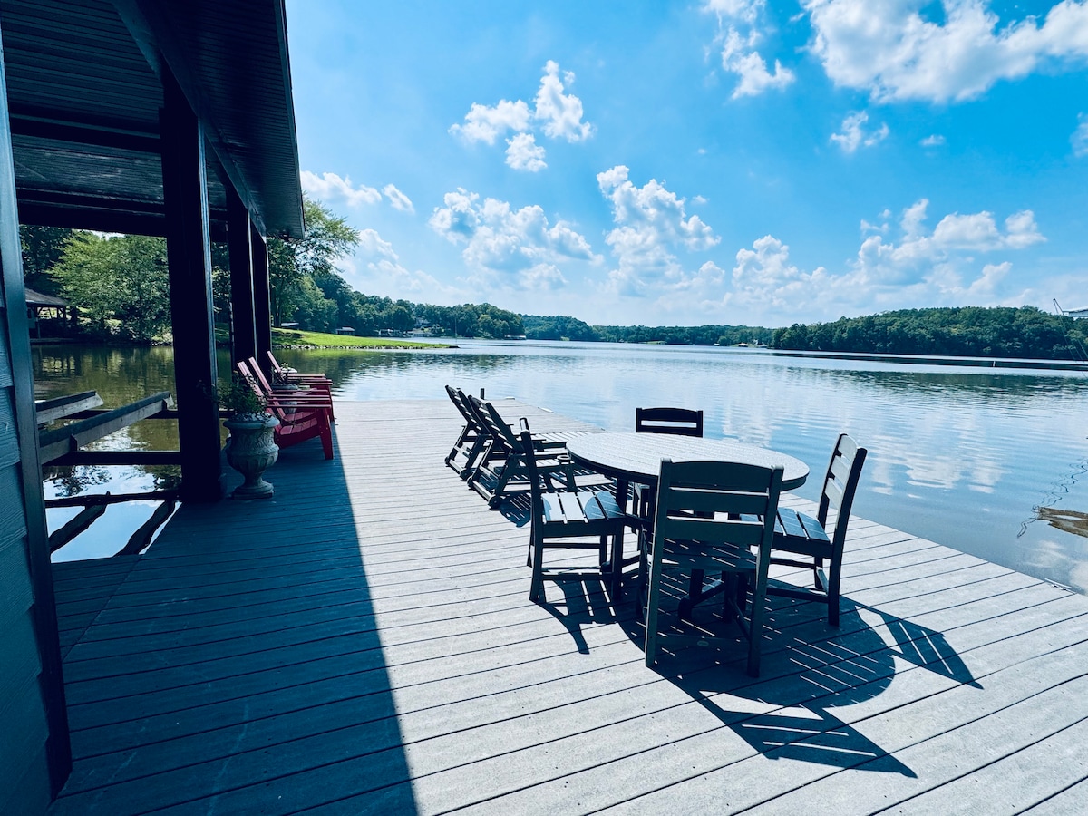 Évadez-vous du stress de la vie avec cette maison au bord du lac de 3 chambres avec grand hangar à bateaux. Peut accueillir 10 personnes dans les chambres et des espaces supplémentaires dans le séjour sur des canapés. Vue imprenable sur le lac et ses environs. Profitez de l'eau avec un tapis flottant inclus ou explorez la région avec nos 2 kayaks et 2 planches de paddle. La maison dispose de 3 chambres, 2 salles de bain complètes, une cuisine spacieuse, un lave-linge/sèche-linge, un foyer, une connexion Wi-Fi de 1 000 Mbps, YouTube LiveTV, un barbecue à gaz, une génératrice de secours pour toute la maison et d'autres équipements.