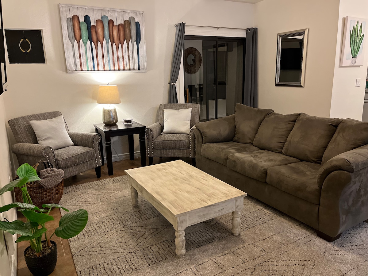 Retirez-vous dans cette casita paisible d'une chambre à West Foothills, située sur une propriété pittoresque de 17 acres. Profitez d'un lit King Size, de la climatisation/chauffage, d'une cuisine complète avec eau RO, d'une machine à glaçons, d'un micro-ondes, d'une cuisinière/four, d'une télévision Roku de 65" avec 220 chaînes, d'une connexion Wi-Fi rapide, d'un lave-linge/sèche-linge dans l'unité et d'une table de jeu. ~74 m² de confort et de charme. À seulement 2 miles d'Ironwood Hill Dr depuis Silverbell Rd, à 6 miles de l'UofA. Impeccablement propre et accueillante, parfaite pour une escapade tranquille. Licence AZ TPT 21337578