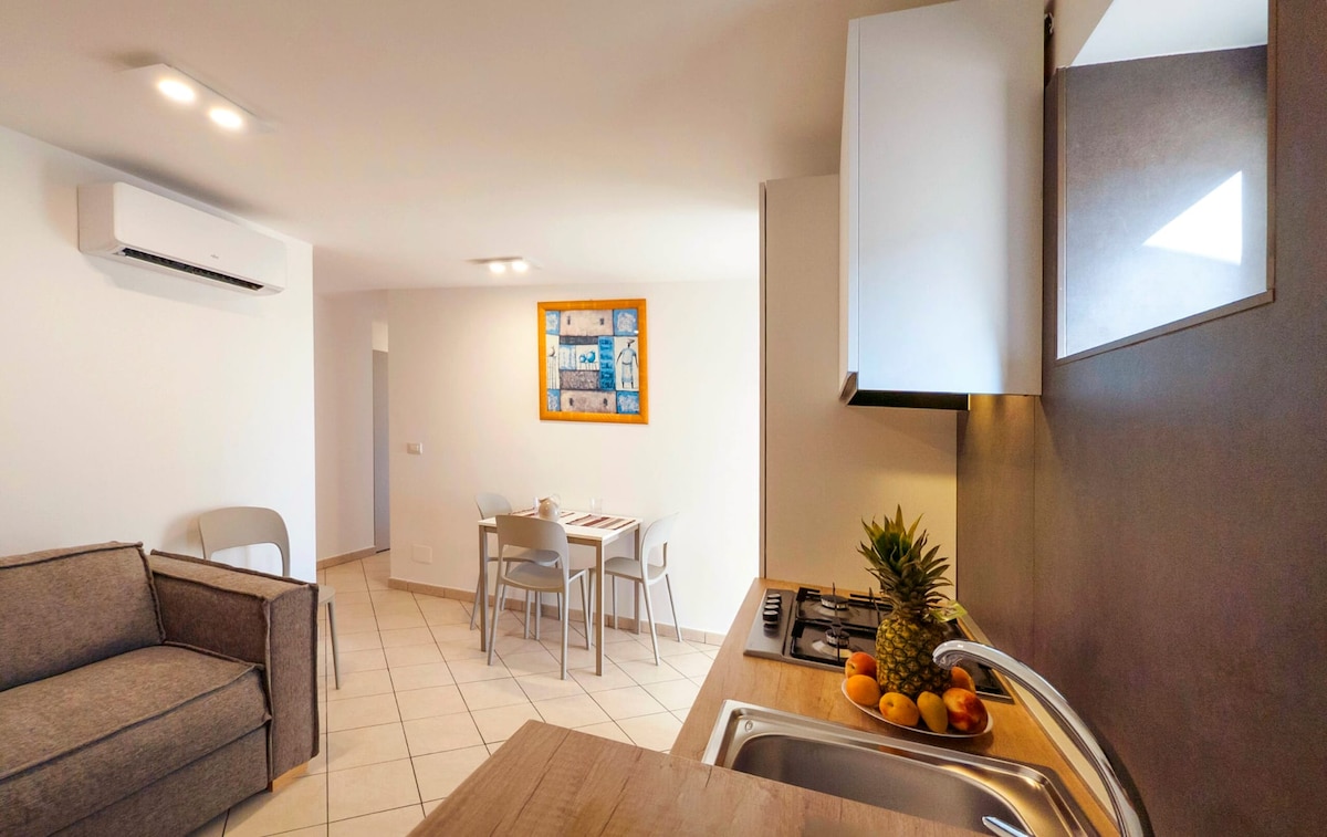 Récemment rénové, ce logement bénéficie d'un design minimaliste et confortable, parfait pour une escapade romantique pour les couples ou un séjour en famille, pouvant accueillir jusqu'à quatre personnes. Cet appartement de deux pièces avec une terrasse spacieuse offre : ➢ Un séjour lumineux avec une kitchenette ➢Une chambre double raffinée et confortable ➢ Une salle de bain moderne avec une touche élégante ➢ Un balcon avec buanderie ➢Une terrasse panoramique avec une table à manger et des chaises longues Une oasis de confort et de style pour votre prochain séjour ! 🏡