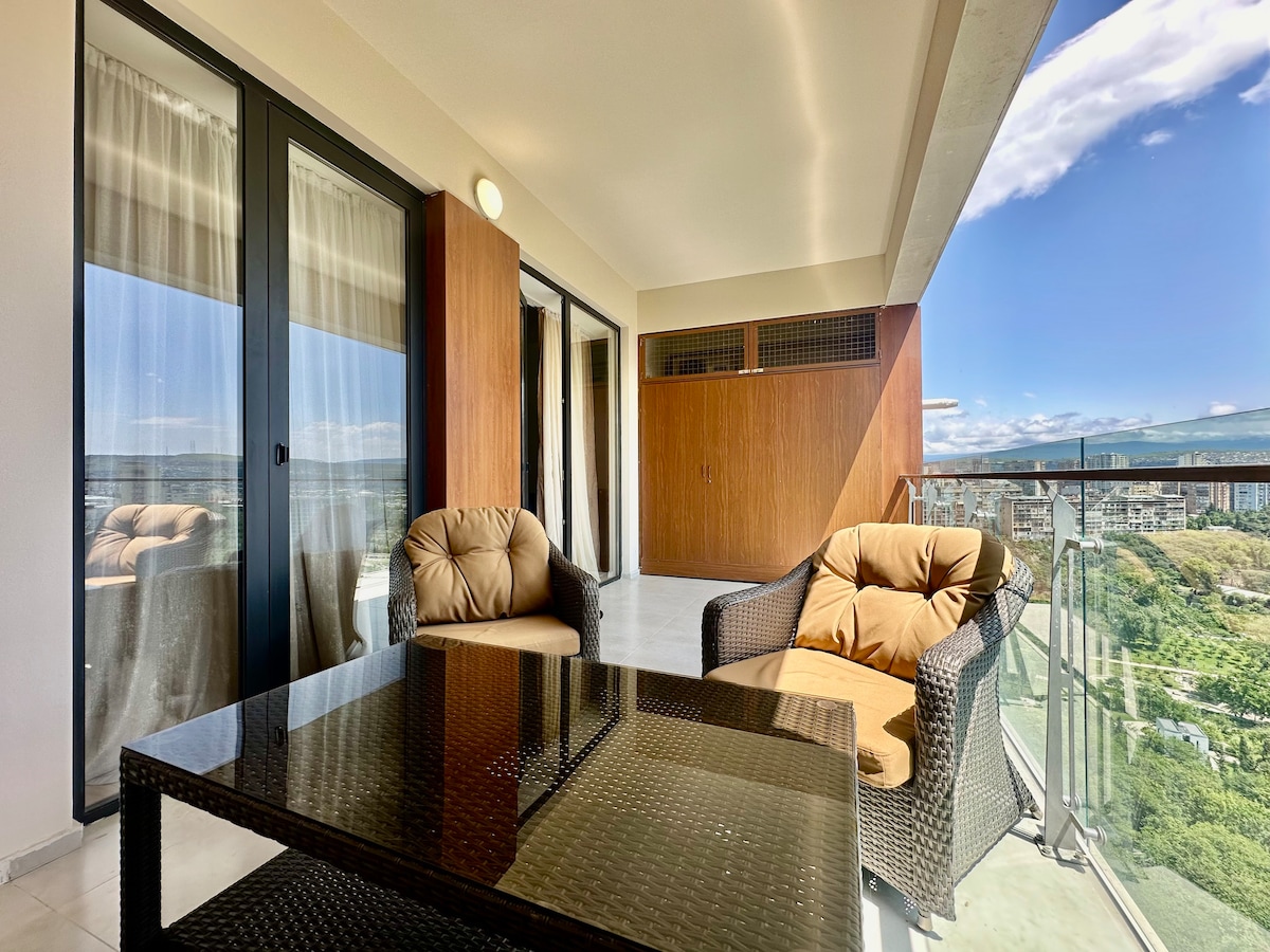 Ce studio 5 étoiles unique et luxueux, entièrement équipé, avec salle de sport et spa (non compris dans le prix), est situé au 10e étage d'un immeuble de premier ordre en Géorgie, avec vue sur la rivière Mtkvari. Spectaculaire pour les familles, les couples et les voyageurs d'affaires. Mon logement est proche du centre-ville et de la rue Agmashenebeli récemment rénovée où vous trouverez de nombreux restaurants et cafés.
