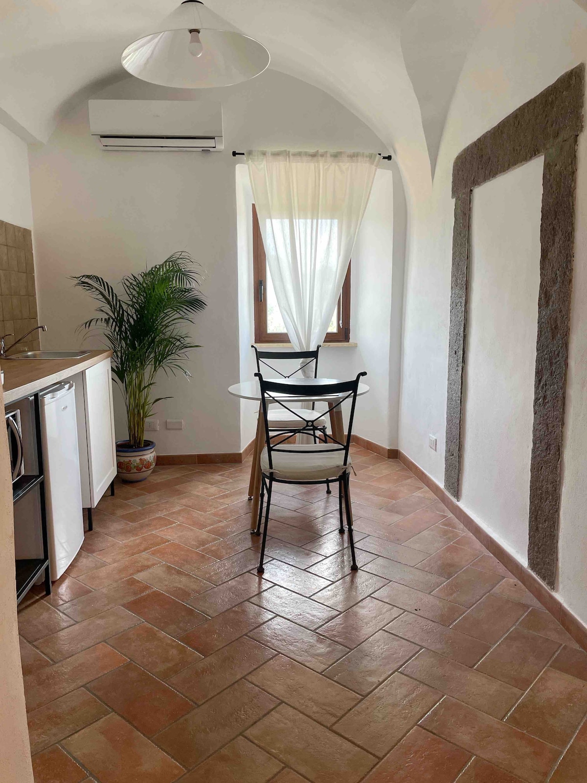 Petit appartement au cœur du centre historique de Vignanello, avec vue panoramique sur les monts Cimini. Situé au rez-de-chaussée d’un bâtiment datant du XVIIIe siècle, il se caractérise par des plafonds voûtés qui, avec la grande cheminée et les montants en pierre, rendent l’environnement accueillant et élégant. Il se compose d’une chambre avec un lit double, d’une cuisine équipée et d’une petite salle de bain. Idéal comme point d’appui pour explorer les merveilles de la Tuscia.