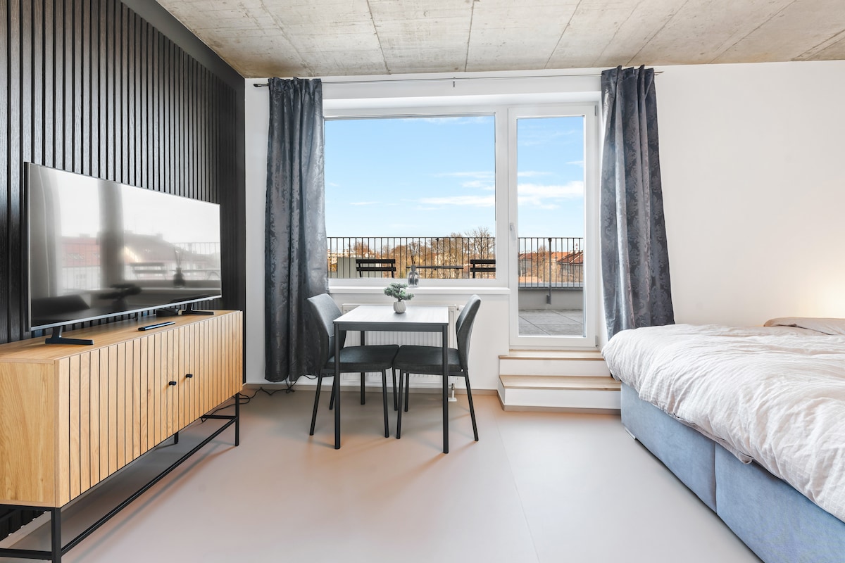 Studio de luxe récemment rénové situé dans le centre de Hradec Králové. L'appartement est situé dans un bâtiment historique du 19e siècle. - pour 2 personnes - situé dans le CENTRE-VILLE - Convient aux couples, aux gestionnaires et aux touristes. - au rez-de-chaussée, excellent restaurant et café ; - Proche des commerces, des guichets automatiques ; - MACHINE À CAFÉ professionnelle et four à micro-ondes ; - station de transport en commun à proximité (400 m) ; - Internet haut débit