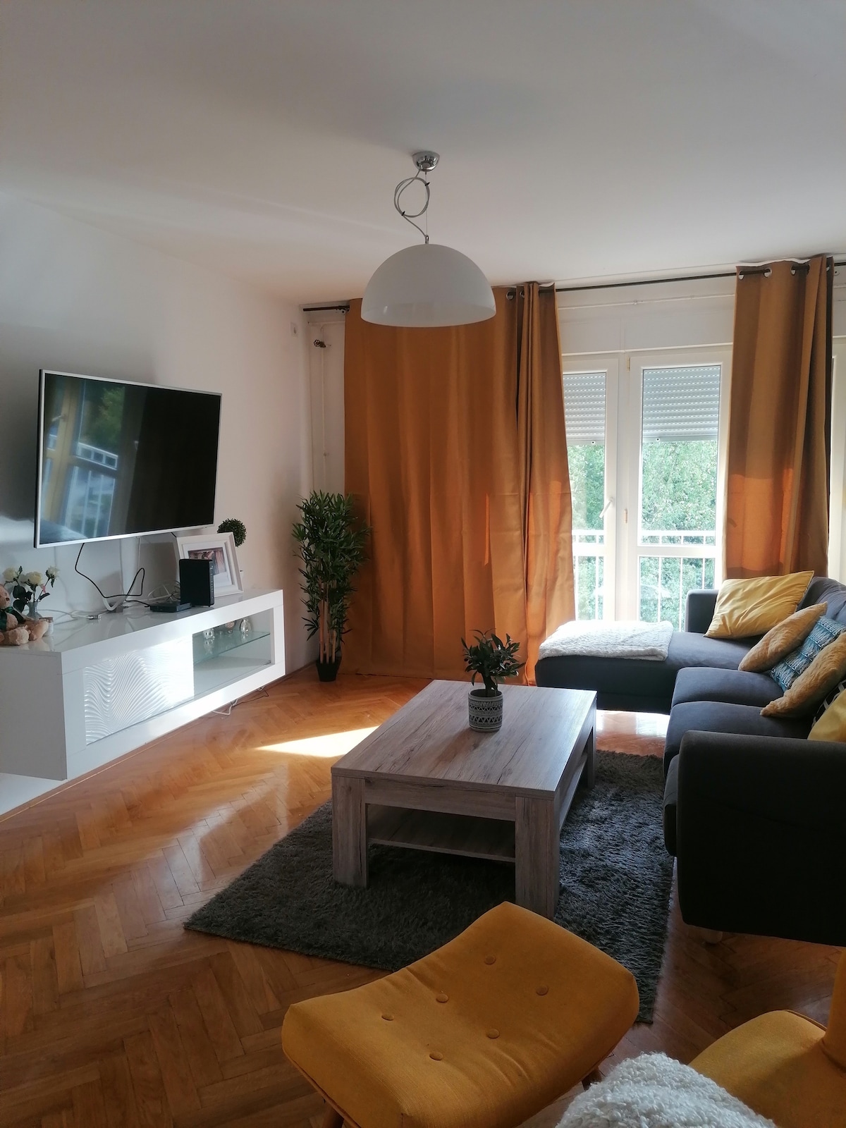 Opremljen apartman na 5. katu stambene zgrade (s liftom). Sastoji se od spavaće sobe (francuski ležaj 200x160), dnevnog boravka (ležaj na razvlačenje 200x130), kuhinje, toaleta, hodnika i terase sa prekrasnim pogledom. Plinsko grijanje. Free Wi-Fi. Besplatan javni parking ispred zgrade. Dječiji kutak za goste koji dolaze s djecom. Apartman je u blizini javnog prijevoza (150 m), stadiona i dvorane Gradski vrt (650 m). U blizini su restorani te stara jezgra grada Tvrđa (2100 m).