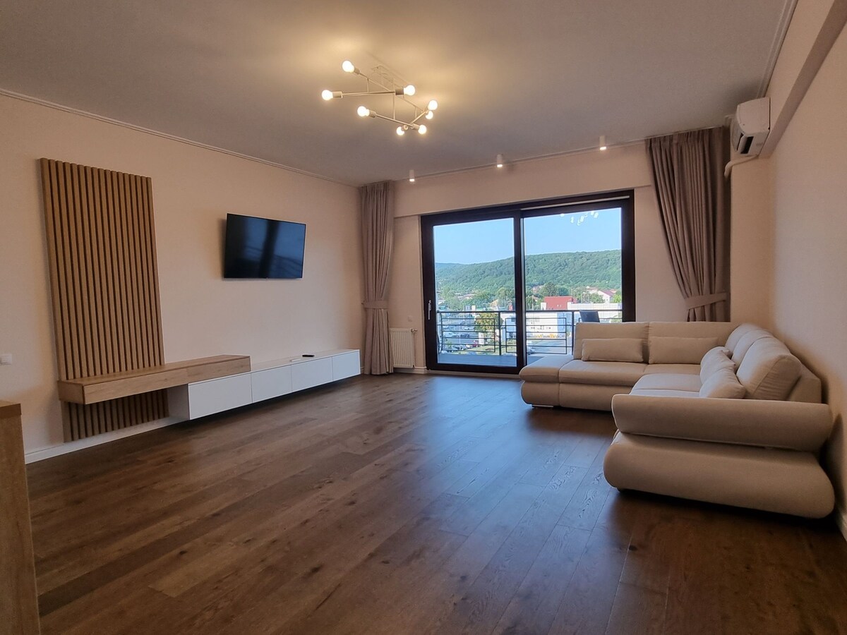 Apartamentul este autorizat de MINISTERUL TURISMULUI, oferind oaspeților siguranța unui spațiu conform standardelor oficiale. Este un punct de plecare excelent pentru explorarea orașului, fiind situat în apropierea centrului. Amplasat la ultimul etaj, oferă o perspectivă deschisă asupra orașului, cu o priveliște îndepărtată spre râul Olt. O plimbare de 10–12 minute te conduce în inima orașului. La parterul blocului se află un minimarket, iar în zonă există supermarketuri si restaurante.