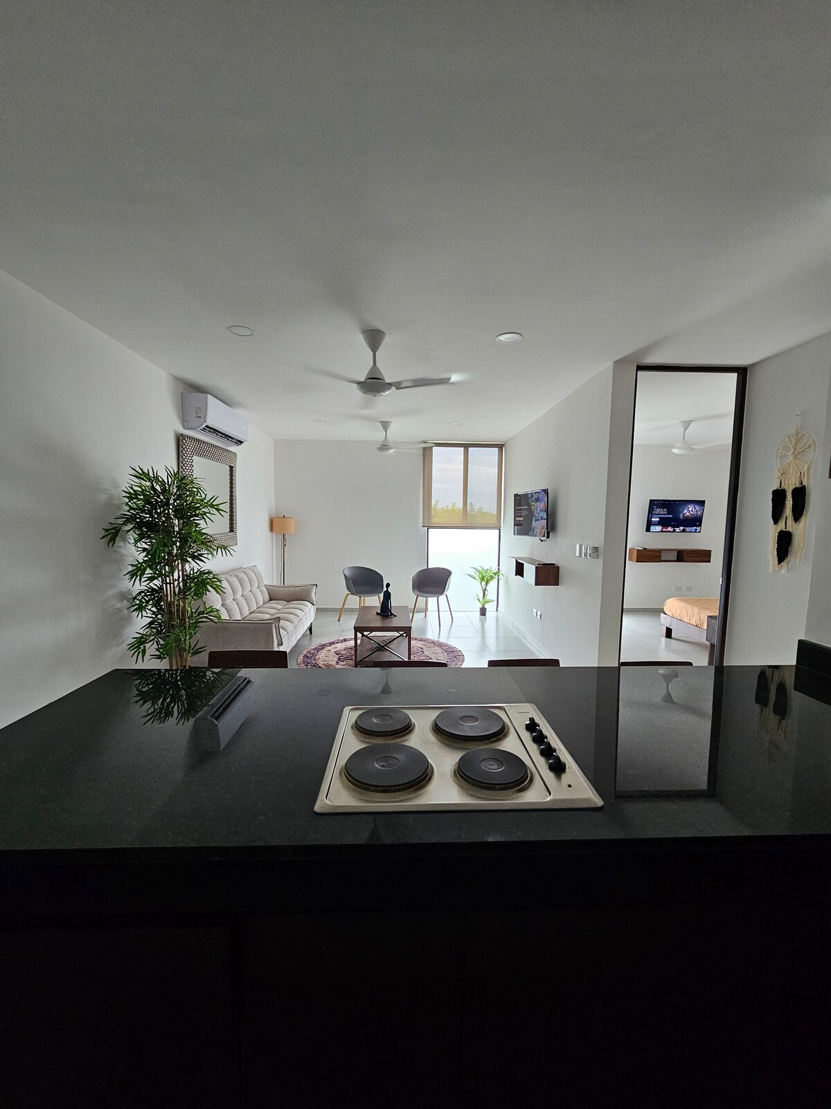Maison moderne et élégante dans une communauté fermée avec sécurité 24h/24 et 7j/7 — parfaite pour le travail à distance ou les vacances. Deux chambres (King + Queen), chacune avec une salle de bain privée, une cuisine entièrement équipée, un espace de travail dédié, une piscine privée, un espace barbecue ombragé et un parking. Situé dans un quartier calme et sûr à seulement 5 minutes du Periférico et à 25 minutes du centre-ville de Mérida. Un séjour confortable et fonctionnel dans la partie nord de la ville.
