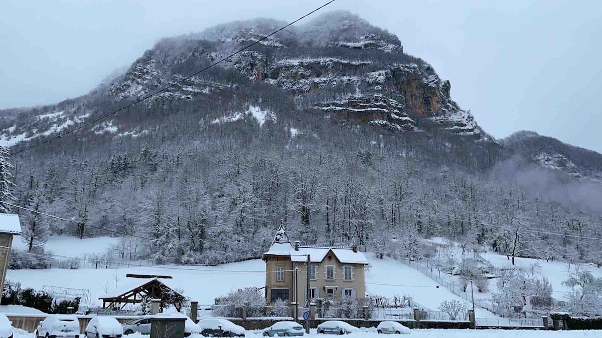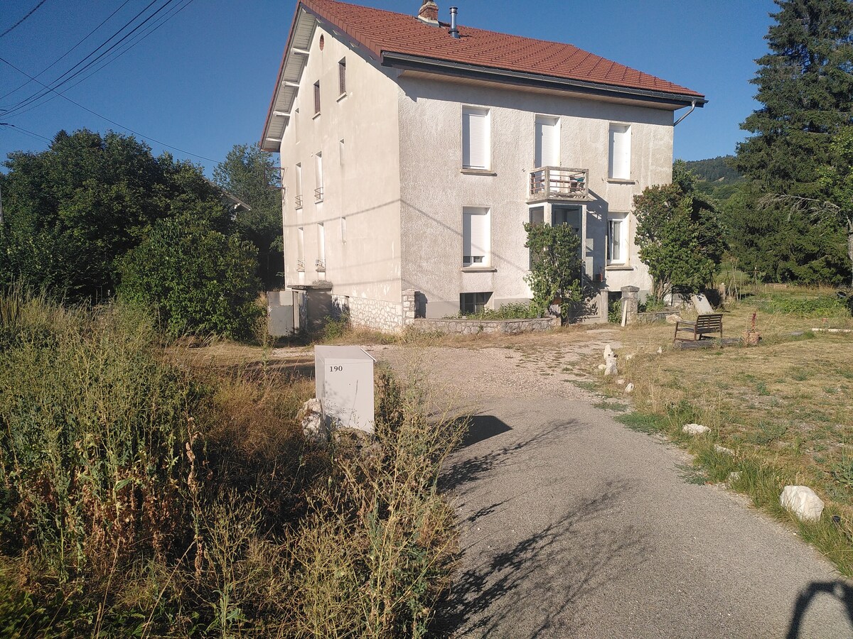 Logement situé à l'étage de notre habitation. Venez vous détendre dans cet endroit paisible, situé dans le Bugey, au pied de la Roche de Narse et au bord de l'Albarine. Vous pourrez pratiquer de multiples activités en plein air : randonnées, ski, VTT, escalade, pêche...et découvrir la richesse culturelle et culinaire des alentours. Accès gare de Tenay -hauteville à 1.5 km, sur la ligne TER Lyon -Genève : à 37 mn de la gare LYON PART DIEU, et à 1h30 de GENEVE Accès autoroute A40 et A42 /20 mn
