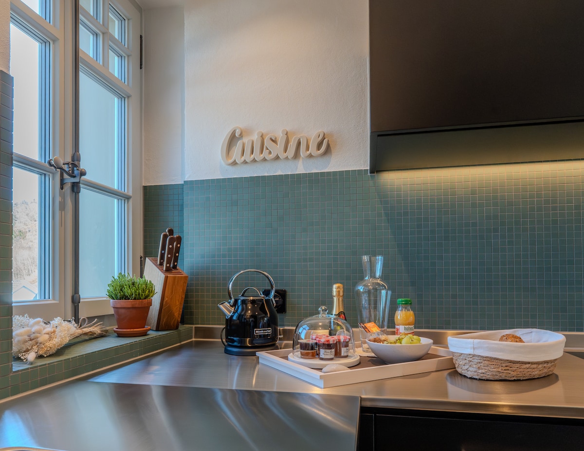 Au Creux de l’Areuse, appartement thématique : ✈️ Voyage Industriel 🖤🧳 Embarquez à bord et laissez ce logement vous surprendre dans son univers unique. Un endroit parfait pour vous permettre de vous reposer à proximité de nombreuses activités dans la région du Val-de-Travers.🌳🏘 : 50m de belles randonnées ⛰🗺 700m de la gare 🚉 1km de la via ferrata 🧗🏼♂️ 2km des Mines d’asphalte ⛑🔦 3km de l’absintherie 🍾🥂 5km des Gorges de l’Areuse 🏞 7km du Creux du Van 📸🇨🇭 23km de la ville de Neuchâtel🏢🌃