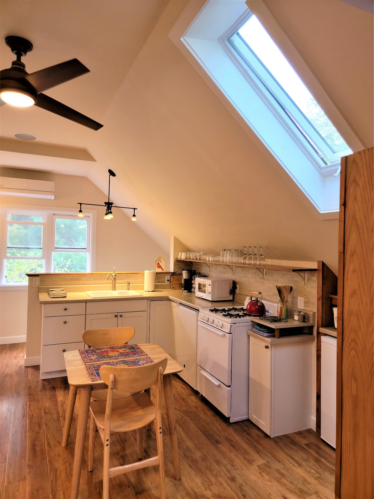 MARATHON/RACE DISCOUNT. Studio Garden apartment with FULL private kitchen, stove/oven, microwave in downtown neighborhood. Key pad Private entrance for easy check in. FREE coffee/tea/hot chocolate bar. Free dedicated guest WIFI, sofa, and workspace.KING BED,fireplace. Great for traveling professionals. FREE (Street) Parking. 5 minute drive to campus; walking distance to downtown events. Guests love:location, convenience, and the updates. Review HOME TRUTHS prior to booking.