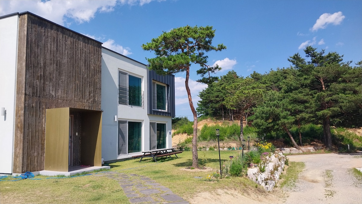 Sampo Byeob est une maison privée située à la fin du village, à 3 minutes à pied de la plage de Sampo à Goseong, dans le Gangwon-do. Il y a une forêt de pins derrière la maison, vous pouvez donc voir le vert toute l'année, et vous pouvez voir la mer depuis la terrasse devant la maison, au bout de la cour avant et sur le toit. La cour avant et la cour arrière sont spacieuses, ce qui est idéal pour les enfants qui veulent courir et jouer, et en particulier dans la cour arrière privée, qui est bloquée de l'extérieur, vous pouvez profiter d'un barbecue avec votre famille/amis, brûler du bois dans le foyer ou observer les constellations du ciel nocturne. Le temps passé dans la cour sera une expérience précieuse pour vous sentir dans la paix de la nature, loin de la ville complexe. Sampo Byeob est le deuxième maison de notre famille et une maison de vacances partagée qui a été renaissée grâce à une rénovation complète en 2023. Ma famille, qui était fascinée par le charme de Goseong et s'y rendait chaque week-end, a préparé une maison où l'on peut se reposer complètement sans avoir à chercher un hébergement, et nous aimerions partager cet endroit que nous avons préparé avec soin.