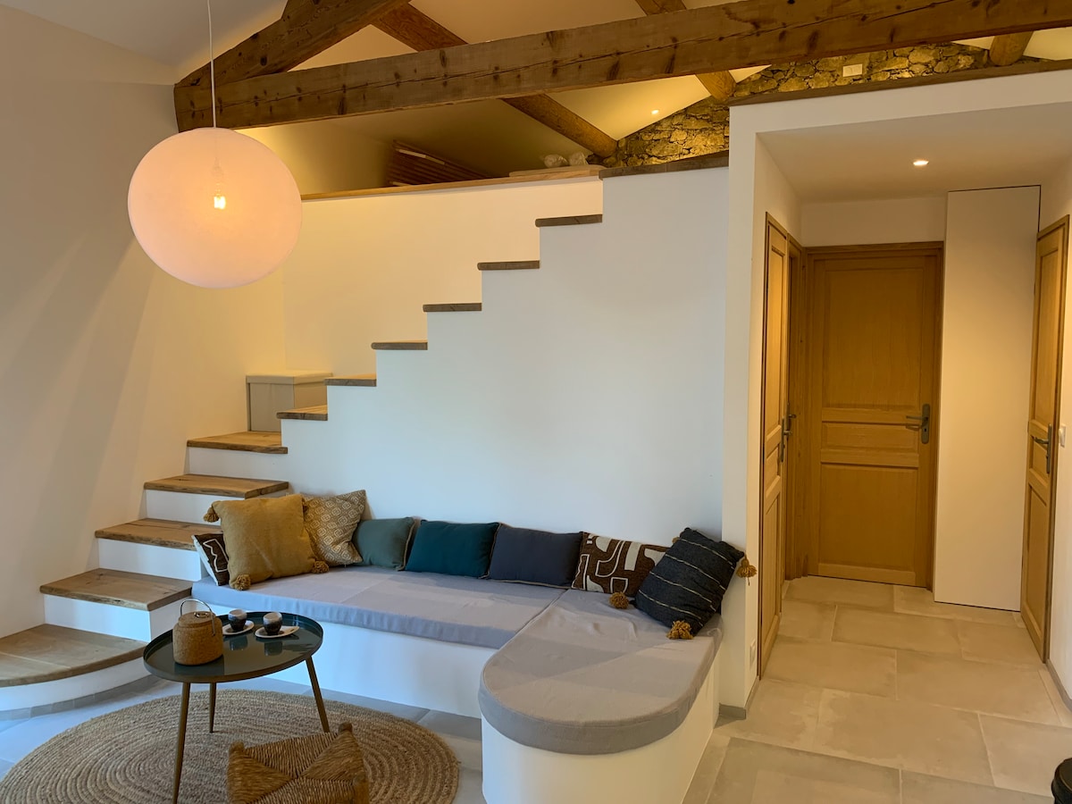La Bastide des Amandiers vous accueille dans L' Appart, un joli gîte pour 2 personnes (37m2), situé à l'étage du corps principal avec une entrée extérieur indépendante. Vous aurez également à votre disposition une petite cuisine d'été privée dans le jardin ainsi que deux bains de soleil. Nous avons deux autres gîtes dans notre propriété où nous recevons des personnes en recherche de calme et de sérénité. Aucun transat n'est installé autour afin préserver l'intimité de chacun.