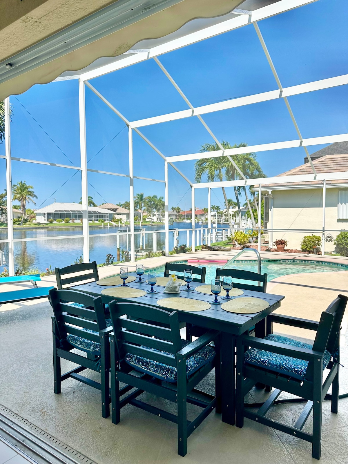 Maison récemment rénovée conçue pour le divertissement et la détente en famille. L'aménagement ouvert permet de profiter des brises constantes du bord de mer tout en se relaxant en famille, en se baignant dans la piscine ou en regardant les lamantins se prélasser dans le canal qui a un accès direct au port de Charlotte et au golfe. La maison est située dans la communauté de golf de Burnt Store Isles (Twin Isles Country Club, à 3 minutes en voiture) avec des centres commerciaux à proximité, Fisherman's Village et le centre-ville de Punta Gorda.