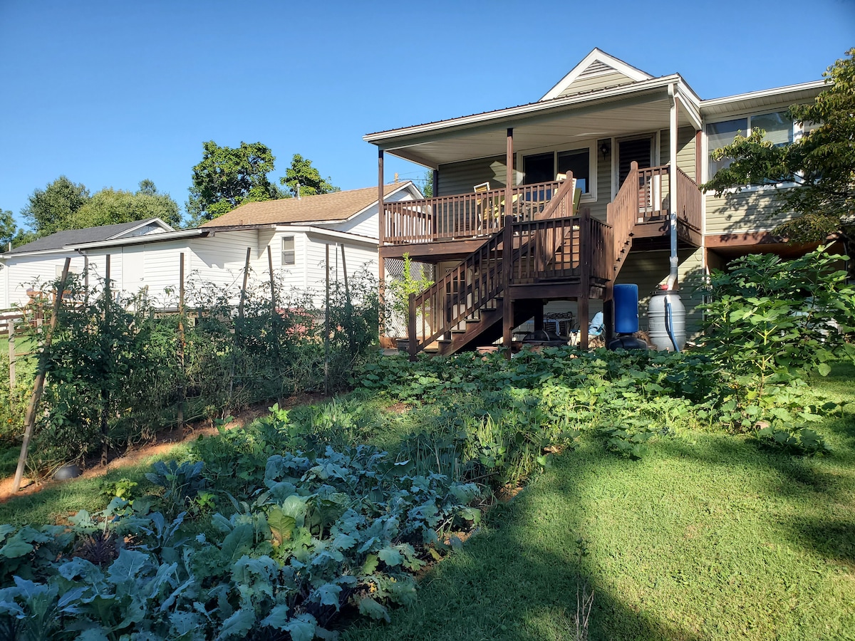 Espace privé unique dans notre petite ferme familiale. Détendez-vous sur notre grande terrasse, promenez-vous dans notre propriété ou explorez la région. Possibilité d'ajouter le petit-déjeuner et le dîner faits maison. Emplacement idéal : à 8 mi de Massanutten (sports de neige, arcade, golf, parc aquatique, VTT) ; à 5 mi du parc national de Shenandoah (randonnée, vélo/conduite panoramique) ; à 4 mi de la rivière Shenandoah (pêche, kayak, rafting, tubing) ; à 3 mi d'Elkton (brasserie primée, excellents restaurants locaux et magasins) ; à 20 mi de JMU, à 35 mi de Charlottesville/UVA.