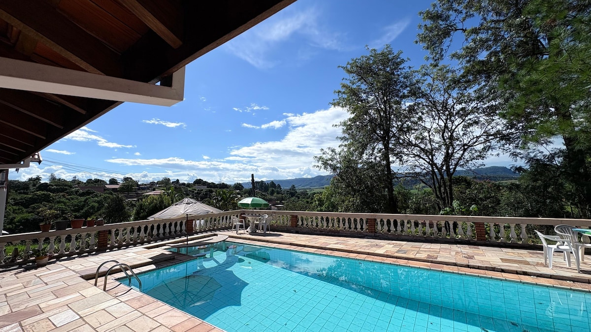 Leve toda a família para apreciar uma vista maravilhosa da Serra, piscina, lareira interna, banheira e muito mais. Um espaço aconchegante e acolhedor em meio a natureza, perto do centro da cidade.
