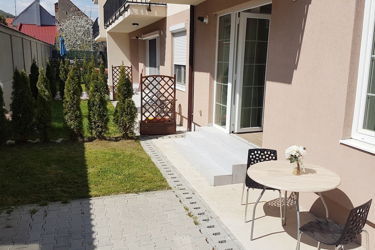 Bienvenue dans votre confortable retraite à Brașov ! Cet appartement d'une chambre entièrement équipé allie confort et style, parfait pour un séjour relaxant. Situé à seulement 15 min du centre-ville et à 5 min du centre commercial Coresi, avec de nombreux supermarchés à proximité. Profitez de textures naturelles, d'un éclairage chaleureux et de tout ce dont vous avez besoin pour une expérience comme à la maison. Idéal pour les couples, les voyageurs en solo ou les familles (canapé-lit dans le salon et parc pour enfants à côté du bâtiment).