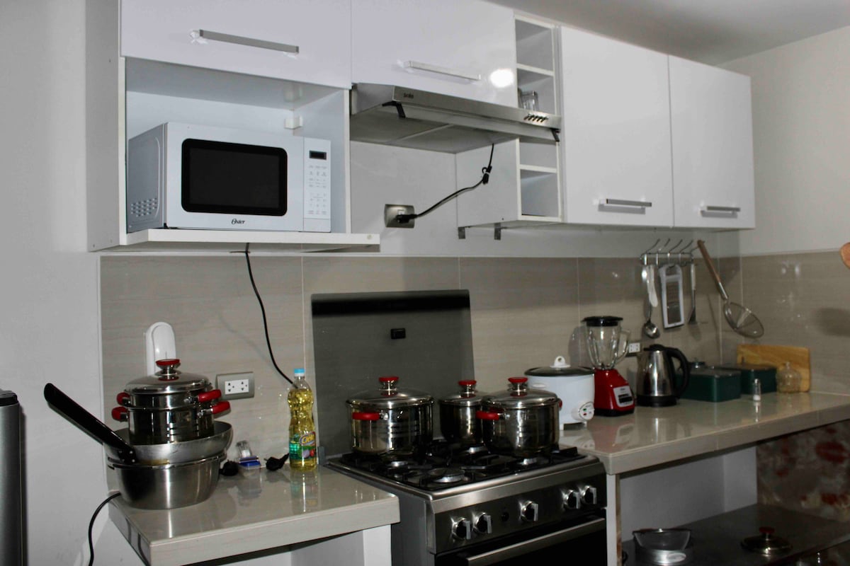 Si vous venez à Chiclayo pour le travail, la santé ou les vacances, seul ou en couple, nous vous proposons un joli mini-appartement neuf, entièrement meublé et avec un accès indépendant, dans un endroit central de Chiclayo, à proximité des centres commerciaux, des caves, des pharmacies et des restaurants, nous avons tout ce dont vous avez besoin pour un séjour confortable et sûr, réservez maintenant et vivez la meilleure expérience. Détendez-vous dans cet espace si calme et élégant.