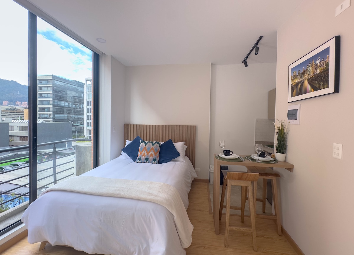 Disfrute de un espacio acogedor. Cuenta con 20 m2 cuadrados, está perfectamente equipado para una escapada en pareja o solo. Amoblado con estilo y equipado con todo lo necesario para su comodidad: Wifi, Smart TV, cocina equipada, Baño privado. Acceso a una terraza en la azotea con vistas panorámicas de 360 grados de la ciudad. A pasos del Parque de la 93, Zona T, CC Andino, Andrés D.C, Zona Gourmet y Zona Rosa. ¡Reserva hoy y descubre lo mejor de Bogotá!