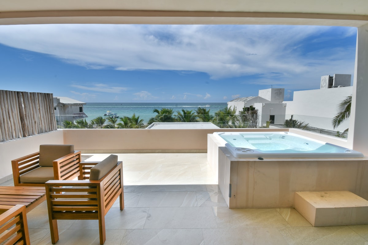 Bel appartement en bord de mer à louer, idéal pour prendre un repos bien mérité dans le meilleur endroit du Yucatan L'appartement dispose d'une cuisine équipée, de la climatisation dans les 3 chambres + d'une grande buanderie Wifi haute vitesse. 1 salon et 2 salles à manger ainsi qu'une cuisine équipée d'un bar La chambre principale dispose d'une télévision Autres équipements Ascenseur Plage privée Accès direct à la plage Piscine pour enfants Piscine pour adultes Face à la plage Chaises longues et douches