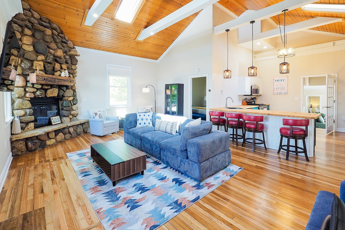 Remarque : les séjours d'été durent 7 nuits minimum du vendredi au vendredi. Bienvenue dans notre confortable « cabane dans les arbres » nichée au milieu des arbres de Lakeside, dans le Michigan ! Notre chalet rénové est à 90 minutes de Chicago au cœur de Harbor Country. Notre maison ouverte lumineuse dispose de finitions haut de gamme et de matelas de luxe. Les teintes inspirées de la nature vous invitent à entrer, faisant de la détente une priorité absolue ! Les espaces extérieurs généreux comprennent une terrasse avec salle à manger, des chaises à bascule et deux braseros pour s'mores sous les étoiles.