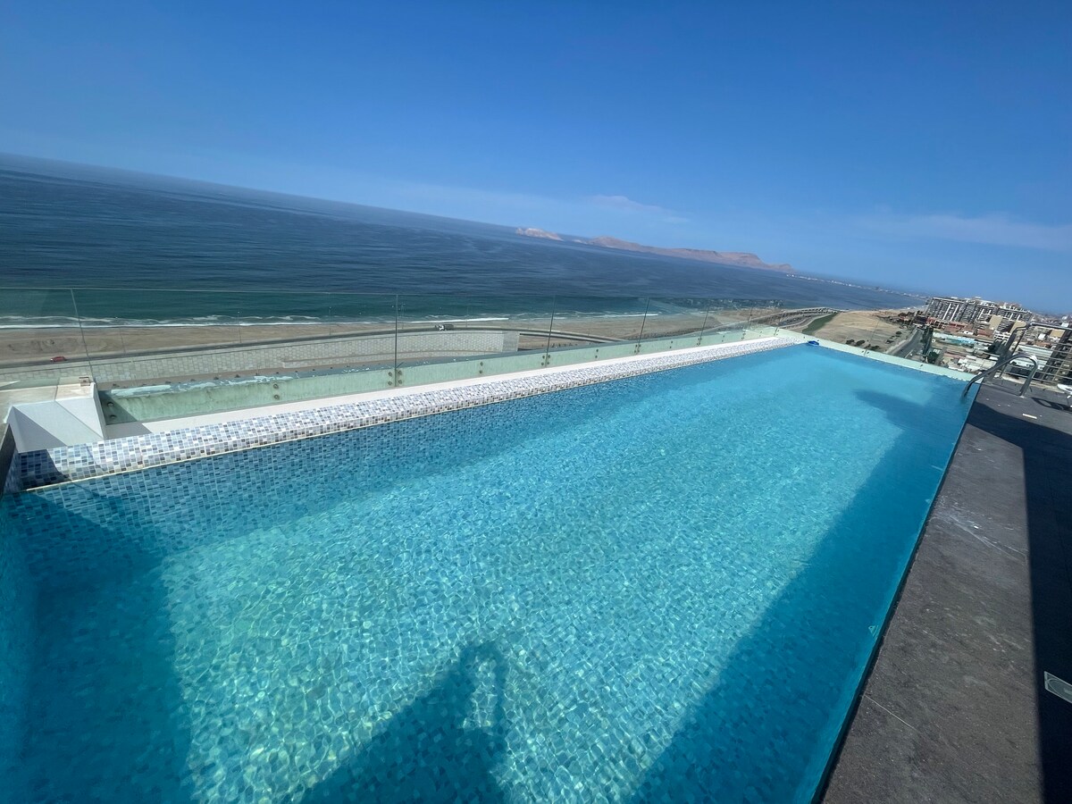 Appartement avec une belle vue sur la mer, à proximité de l'aéroport et des meilleurs sites touristiques de Lima, meublé avec tout le confort. Il se compose de : Salon, bureau, Kitchenette, 1 Chambre avec lit queen-size, 1 salle de bain 1 salle de bain et une terrasse avec vue sur la mer. Avec espaces sociaux : Salle de Cinéma, Salle de jeux, Cour avec Cuisinière, Blanchisserie, Salle pour Adultes, Gymnase, Sauna, Environnements de Grillades, Terrasse avec baignoire d'hydromassage, Piscine pour adultes et enfants.