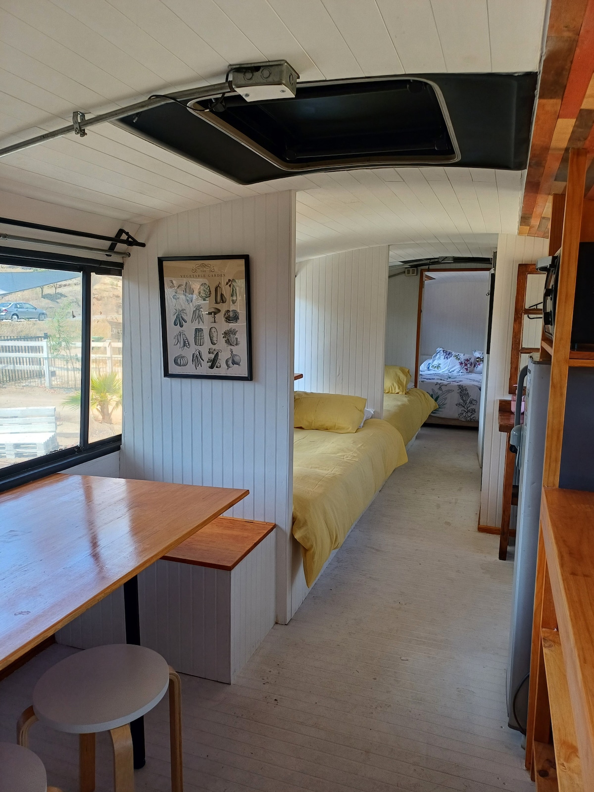 Expérience unique à La Patiperra ! Ce bus classique de 1971 a été entièrement rénové avec des bois indigènes pour créer un appartement charmant et indépendant, parfaitement équipé pour un couple. Niché dans un magnifique jardin rempli d'arbres fruitiers, à l'intérieur d'un appartement en résidence privé calme, à quelques minutes du centre-ville de Puerto Varas. Important : ❌ Ne convient pas aux personnes à mobilité réduite. 🐾 Les animaux de compagnie ne sont pas acceptés (il y en a déjà plusieurs sur la propriété). Réservez votre séjour et profitez de cette retraite unique !