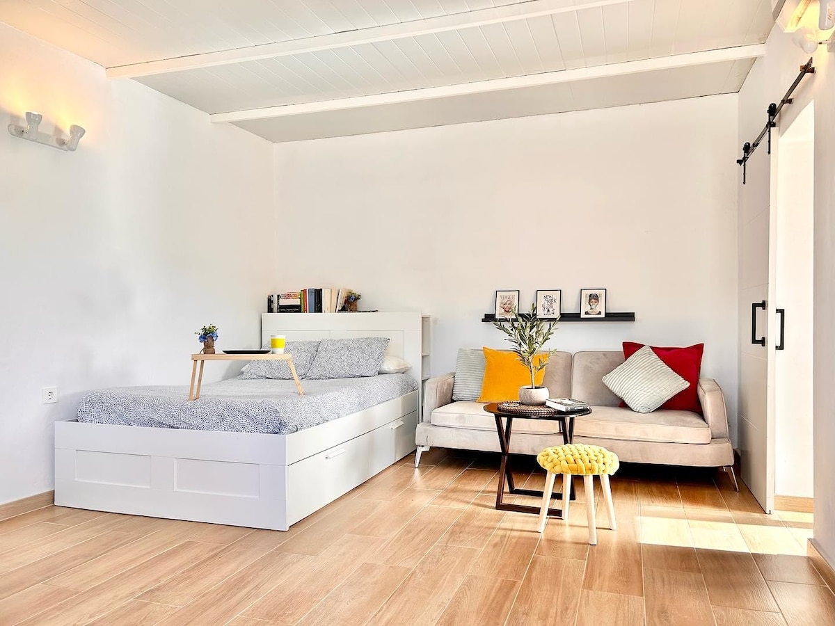 Parfait pour les professionnels en activité, ce mini-appartement moderne offre un espace calme et fonctionnel avec une vue imprenable sur le Teide. Profitez d'un bureau dédié, d'une connexion Wi-Fi rapide et de nombreuses prises pour un séjour productif. Matelas en latex ✔ de luxe : assure un sommeil réparateur, même pour ceux qui ont des problèmes de dos. ✔ Beaucoup de prises et un bureau Cuisine ✔ privée + cuisine et salle à manger partagées Accès au ✔ lave-linge et au sèche-linge ✔ Jardin pour le café du matin Stationnement ✔ à proximité et accès facile Une retraite paisible avec tous les éléments essentiels pour le travail et le confort !