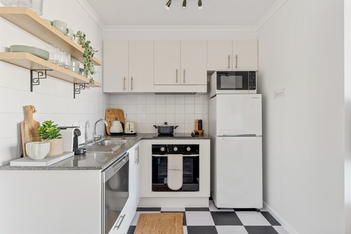 Welcome to your light-filled inner-city escape in the heart of Chippendale. This charming one-bedroom apartment offers a warm and practical home base with a clever open-plan layout, stylish furnishings and everything you need for a relaxed and comfortable stay. The living area is bright and inviting, featuring a queen-size sofa bed and a private balcony framed by leafy views — the perfect spot for a morning coffee or an evening drink.
