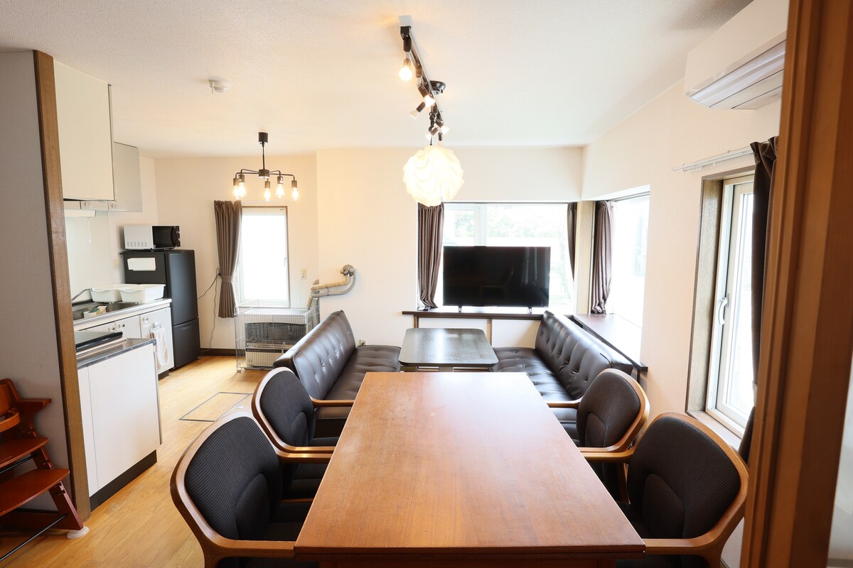 À environ 1 heure de l'aéroport de Sapporo et de Shin-Chitose. C'est une maison individuelle située tranquillement dans les montagnes de la ville d'Iwamizawa. C'est un espace ouvert avec des puits de lumière, qui est une maison privée rénovée. L'air est pur, le soleil du matin est agréable et le ciel étoilé est très beau les jours ensoleillés. J'espère que vous pourrez rester ici et respirer profondément en écoutant les sons de la faune et en sentant le changement des saisons. ◯Espace Vous pouvez utiliser librement un bâtiment de deux étages. · Les chambres de 6 tatamis sont reliées entre elles. - 1 lit double (pour 2 personnes) - 3 futons (3 lits simples) Cuisine L'évier a 3 niveaux, vous pouvez donc cuisiner en toute liberté. Cuisinière à gaz à deux feux/casserole/ensemble d'ustensiles de cuisine/vaisselle/micro-ondes/grille-pain/réfrigérateur/cafetière/bouilloire électrique/cuiseur Salon Il y a un salon spacieux au 2ème étage où vous pourrez vous détendre. Profitez librement des livres, des haut-parleurs, etc. Lavabo, douche Il y a une salle de douche. Serviettes / Shampooing / Après-shampooing / Gel douche / Sèche-cheveux / Machine à laver Il y a un onsen (Maple Lodge) à environ 3 km.