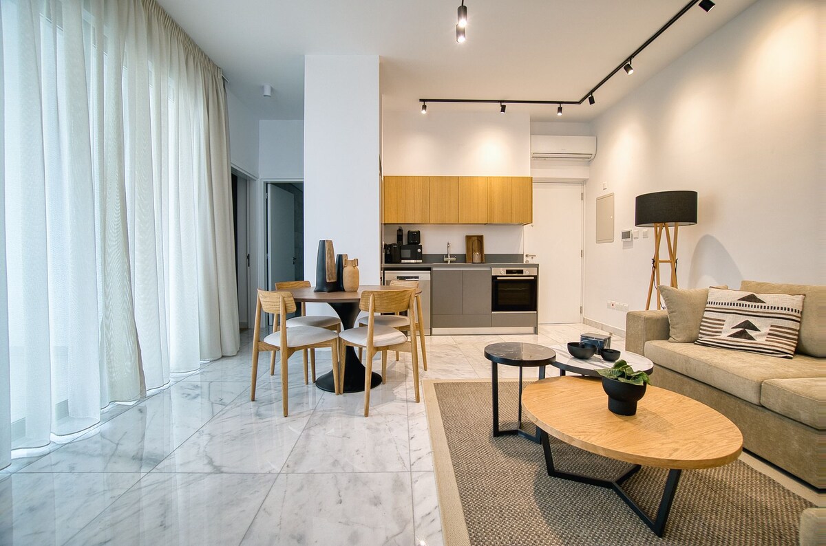 Elite Urban Residence by Nomads est un tout nouvel appartement de luxe en plein centre du centre-ville de Paphos. Doté d'une cuisine ouverte entièrement équipée, d'un coin repas et d'un salon, il s'étend jusqu'à un grand balcon privé avec sièges extérieurs. L'appartement dispose de deux chambres : un maître avec un lit queen et une salle de bain avec douche, et une deuxième chambre avec deux lits simples. Il y a également une deuxième salle de bain pour plus de commodité. Idéal pour les voyageurs à la recherche d'un séjour moderne et luxueux dans un emplacement privilégié.