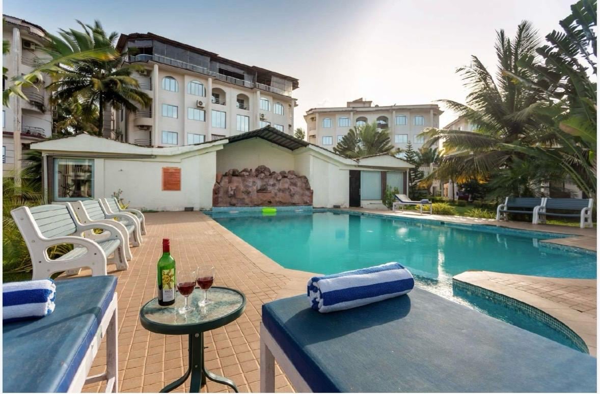 Confortable 2BHK avec grande piscine et jardin près de la plage de Morjim