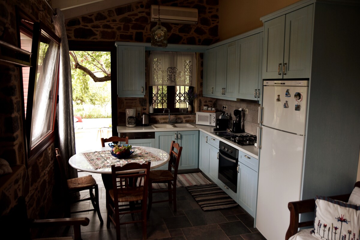 Maison traditionnelle à Patrika l'un des villages médiévaux de chios du sud spécialement construite pour la collection du mastic.De retour à l'époque médiévale, entièrement rénovée en 2018 par rapport à l'architecture traditionnelle. Une attention particulière a été accordée à la décoration, au luxe et au confort. Construit sur deux niveaux, il comprend 2 chambres spacieuses, une cuisine, une salle de bain, un grenier avec un lit double, une terrasse avec vue sur la mer et les montagnes et un balcon sur la place du village.