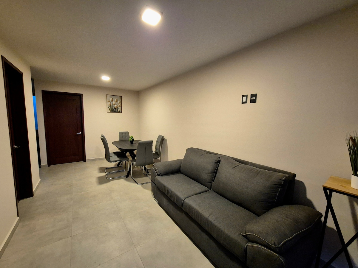 Nouvel appartement chaleureux à quelques mètres du centre historique de Zacatecas, avec une belle vue, très proche de la mine El edén, appartement privé où vous passerez d'agréables moments. Idéal pour les couples. À quelques pas, vous trouverez des magasins, des pharmacies et tout ce dont vous avez besoin. Le service d'assistance de notre équipe est disponible de 8 h à 23 h, en cas de besoin d'assistance à un autre moment, il est soumis à disponibilité.