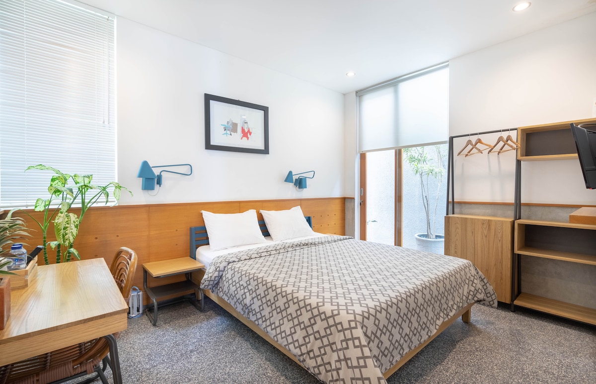 Bienvenue à Haeun by Kitanari — appartement de style coréen avec une ambiance calme et douce. Humeur : 🍵🏡🌿🧖🏻♀️📖 Cet appartement de 2 chambres peut accueillir 3 à 4 (+1) personnes. Avec un design minimaliste, des couleurs neutres sombres et un balcon donnant sur la piscine lagon, inspiré du nom Haeun de la plage de Haeundae à Busan. Ce logement est idéal pour les familles ou les amis à la recherche d'un séjour esthétique à Bandung. Situé à Gateway Pasteur, avec un accès facile à PVJ, Paskal, Dago, Riau, Gedung Sate et au péage.