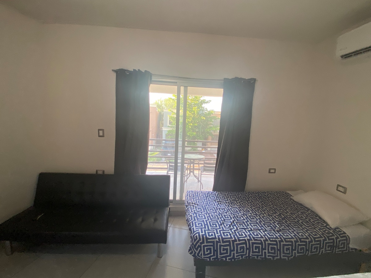 Mi alojamiento es ideal para parejas, aventureros, familia y mascotas. Muy cerca del nuevo estadio de béisbol. El Departamento cuenta con 3 habitaciones: 2 habitaciones con cama individual y 1 habitación con cama matrimonial. 1 baño , cocina equipada, TV e internet. El departamento está en un edificio multi-familiar, no tenemos cochera, tu carro lo podrás estacionar afuera del edificio sobre la calle.