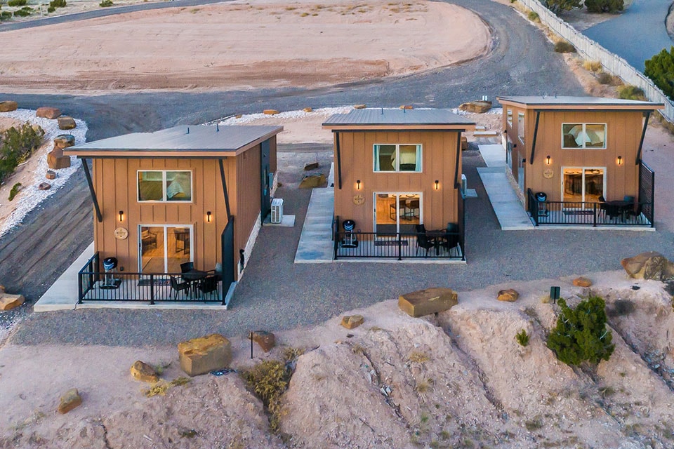 Rustic Highland est une petite cabane de luxe de 740 pieds carrés pleine de chaleur et de charme, avec des armoires teintées et des accents d'inspiration bohème. Le salon lumineux donne sur une cuisine entièrement équipée, et la salle de bain de type spa ajoute une touche de luxe. La chambre principale dispose d'un lit Queen Size avec de nombreux rangements, tandis que le loft offre un autre lit Queen Size et une vue imprenable sur le canyon. À l'extérieur, profitez du patio privé avec une table de bistrot et un barbecue, le tout situé au bord du canyon de Palo Duro pour une expérience inoubliable.